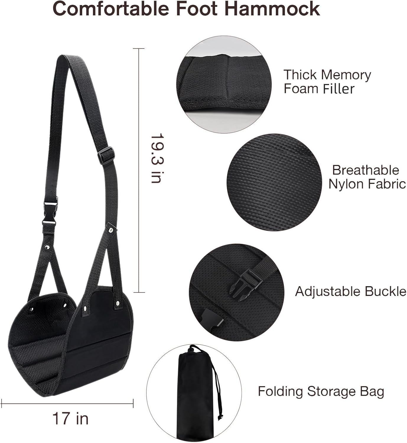 ✈Adjustable Foot Hammock with Strong Support – Hang this airplane foot rest from your tray table effortlessly. It features an adjustable strap for various heights and boasts thicken memory foam padding with an outer flannel lining for added comfort. This foot hammock not only provides leg support but also aids in preventing lower back pain, stiffness, and leg swelling during extended flights and prolonged sitting. Enhancing blood circulation, it effectively alleviates fatigue.