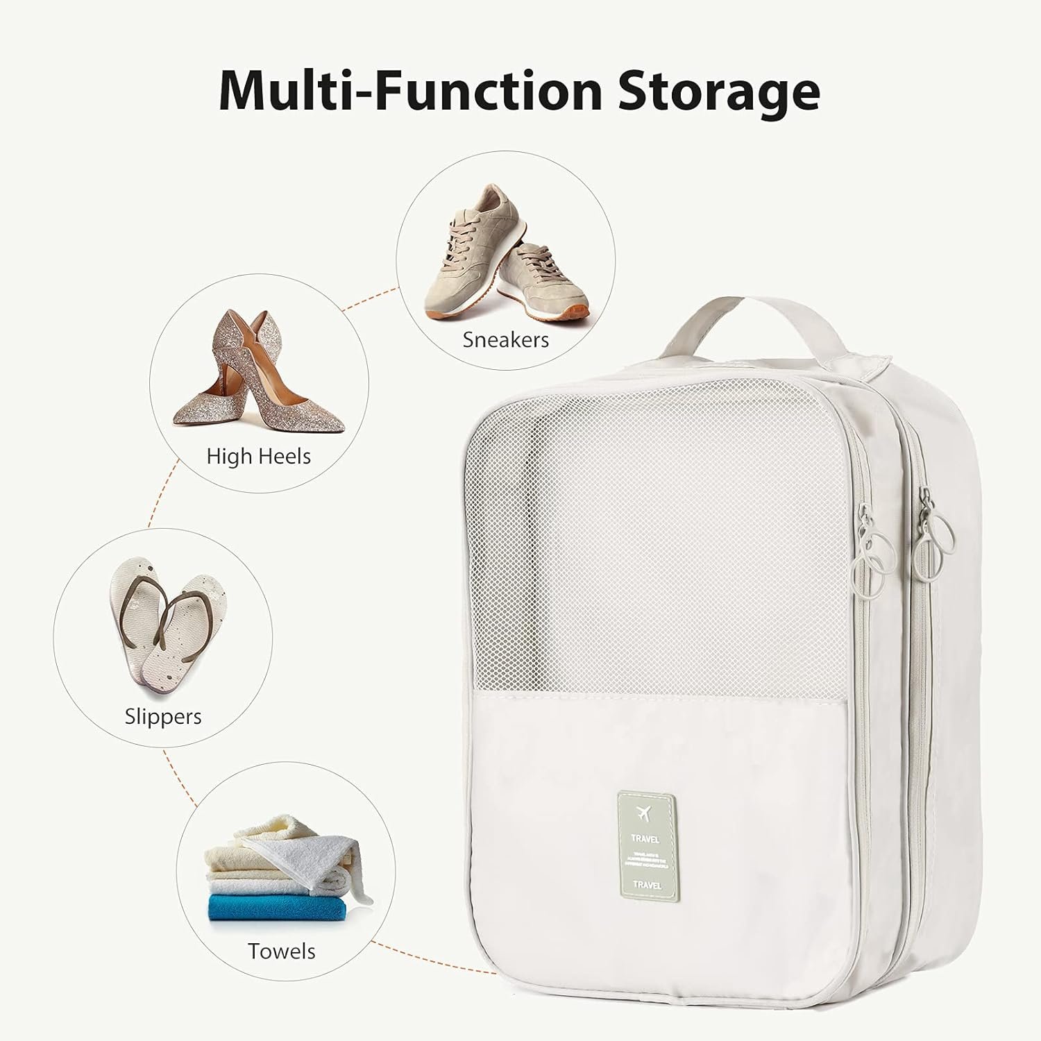 【Multifunction Bag】:Not only can be used as a shoe bag for travel, but also as a cosmetic organizer, clothes organizer, golf shoe bag,tool organizer, underwear organizer, for storing small items, clothes, cosmetics, cleaning supplies. Perfect for your travel, camping, business, fitness.