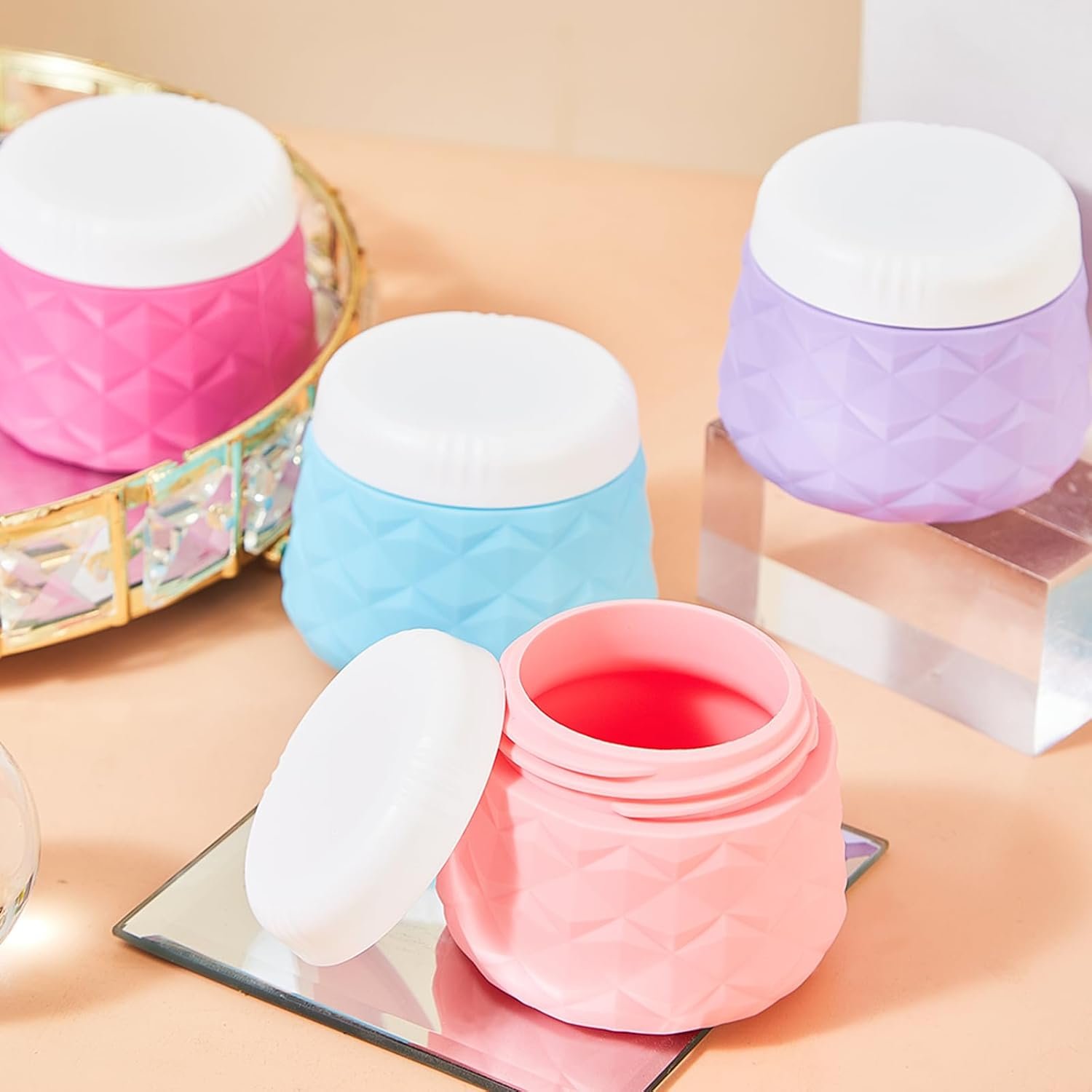 Travel silicone cream jars with lids can store creams, accessories, small jewelry and more