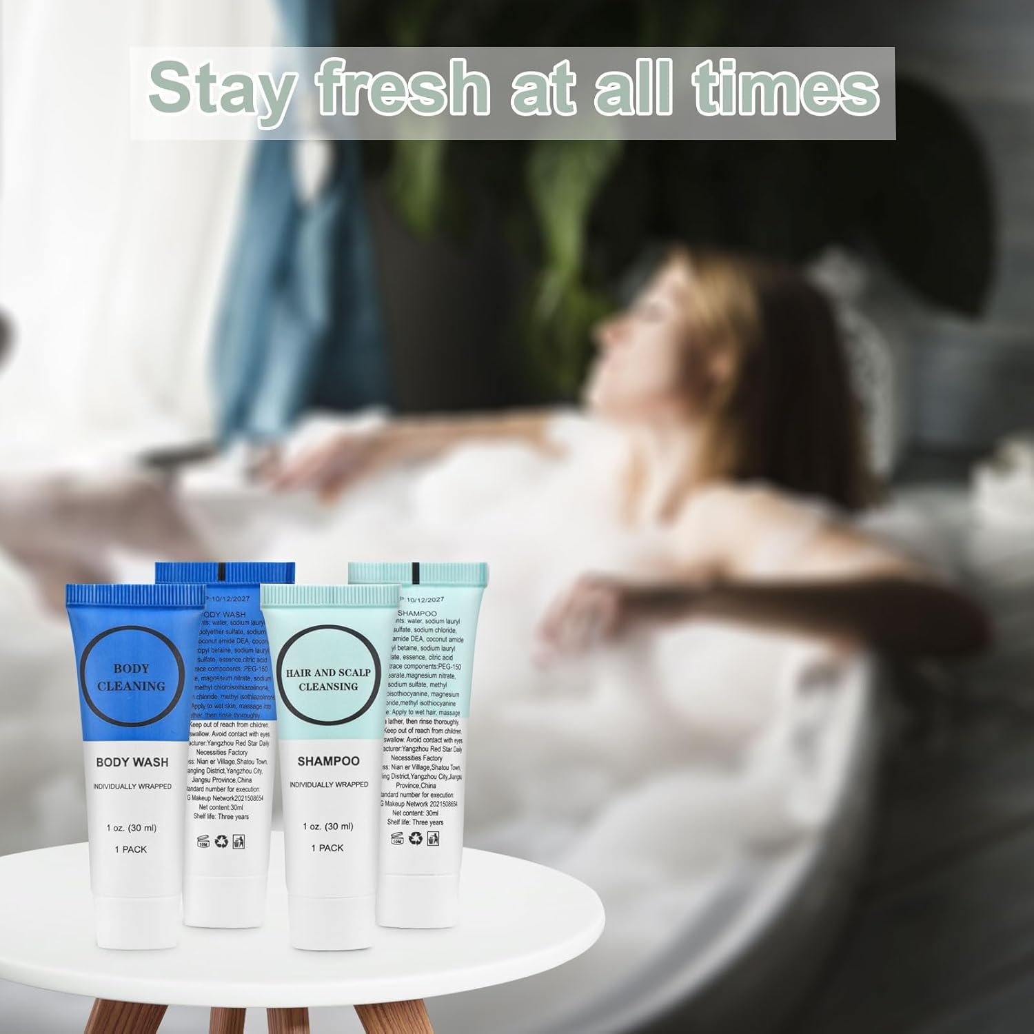 Package Content: You will receive 50 pack travel size body wash, 50 pack travel size shampoo, each pack is individually wrapped, easy to carry and use, it is the ideal travel size disposable toiletries for guests, families and vacation rentals!