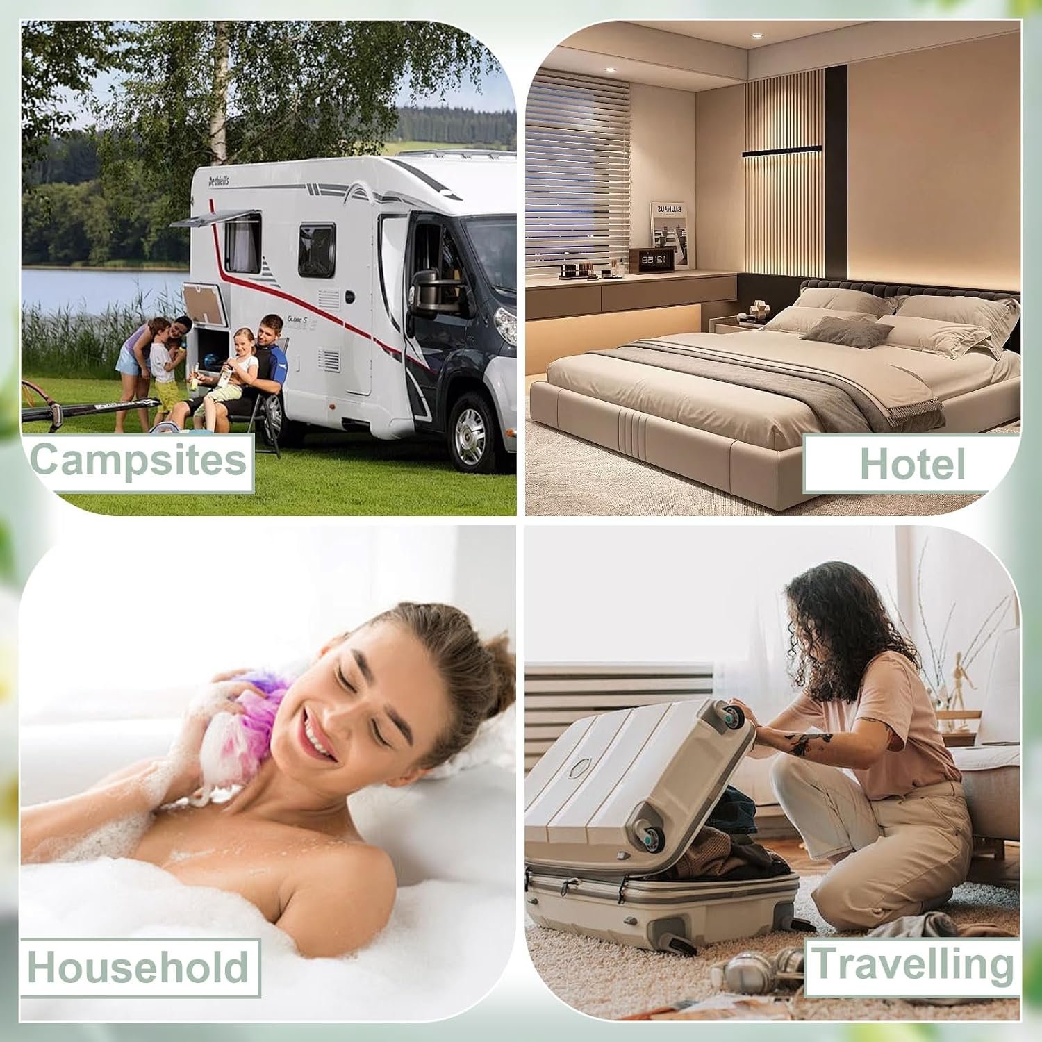 Widely Applicable: Hotel travel toiletries can meet all your needs, ready for your weekend trips, camping and vacations, suitable for offices, gyms, after swimming, spas, hotels or motels, inns