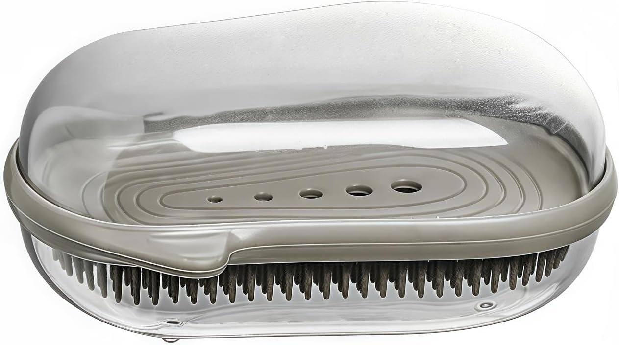 Travel Soap Case with Lid, Leakproof Bar Soap Holder with Drainage Layer Silicone Scrubber, Shatterproof Soapbox Container for Traveling Camping Gym Bathroom Shower Travel Essentials (1, Grey)