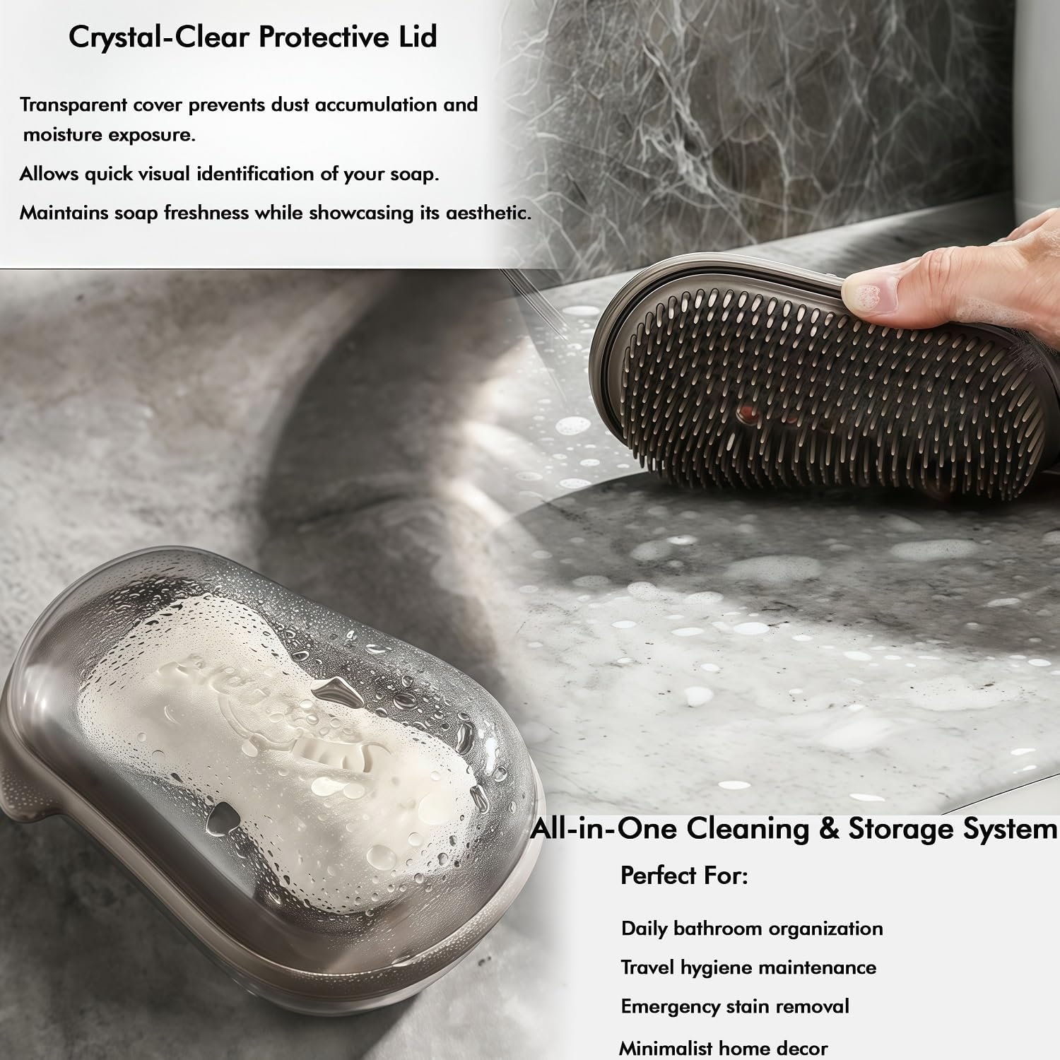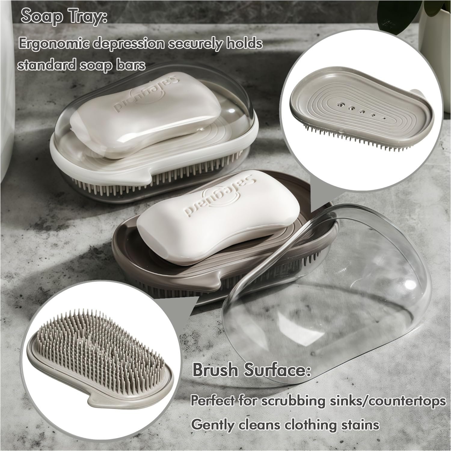 2-in-1 Soap Holder & Silicone Scrubber: Doubles as a storage soap case and cleaning tool! The detachable soap tray has silicone brush on the back, perfect for scrubbing skin, clothes, or sinks. Versatile and hygienic for home or outdoor adventures.