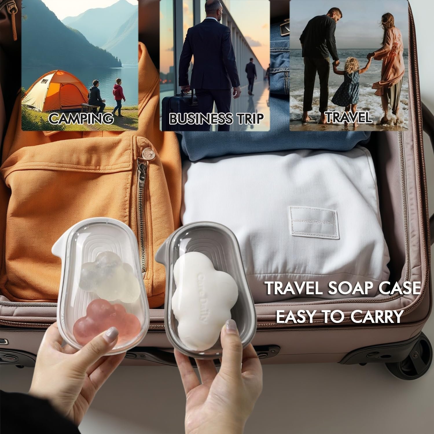 Easy to Clean & Multi-Scenario Use: Made of durable, BPA-free acrylic and silicone, this soap dish is effortless to rinse and wipe clean. Great for bathrooms, hotels, hiking, or daily use—adaptable to any lifestyle.