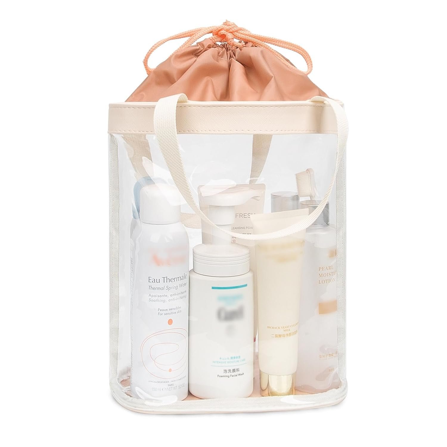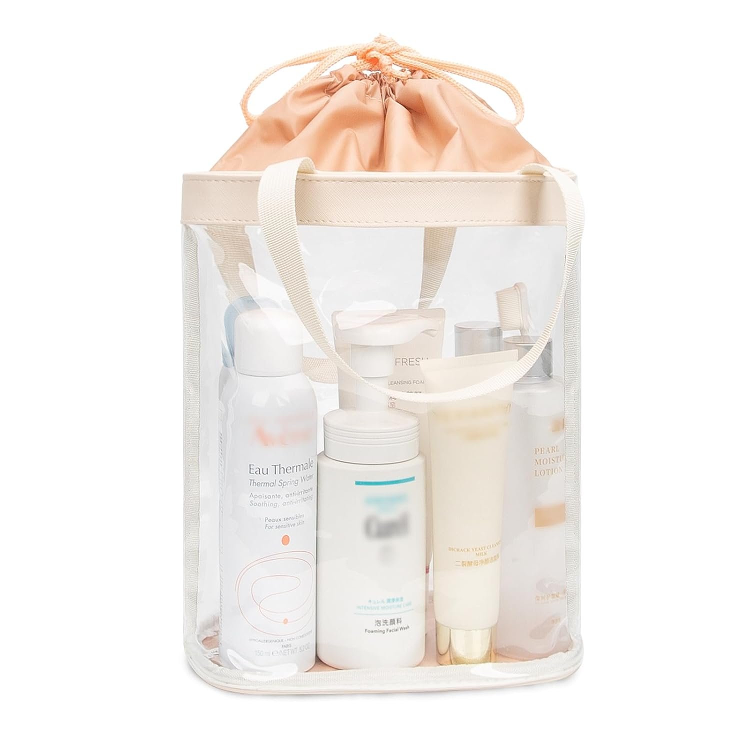Travel Toiletry Bag, Clear Makeup Bag for Women, TSA Approved Toiletry Bag, Waterproof Clear Bag Cosmetic Pouch, Transparent Makeup Organizer, Carry on Airport Airline Compliant, Beige