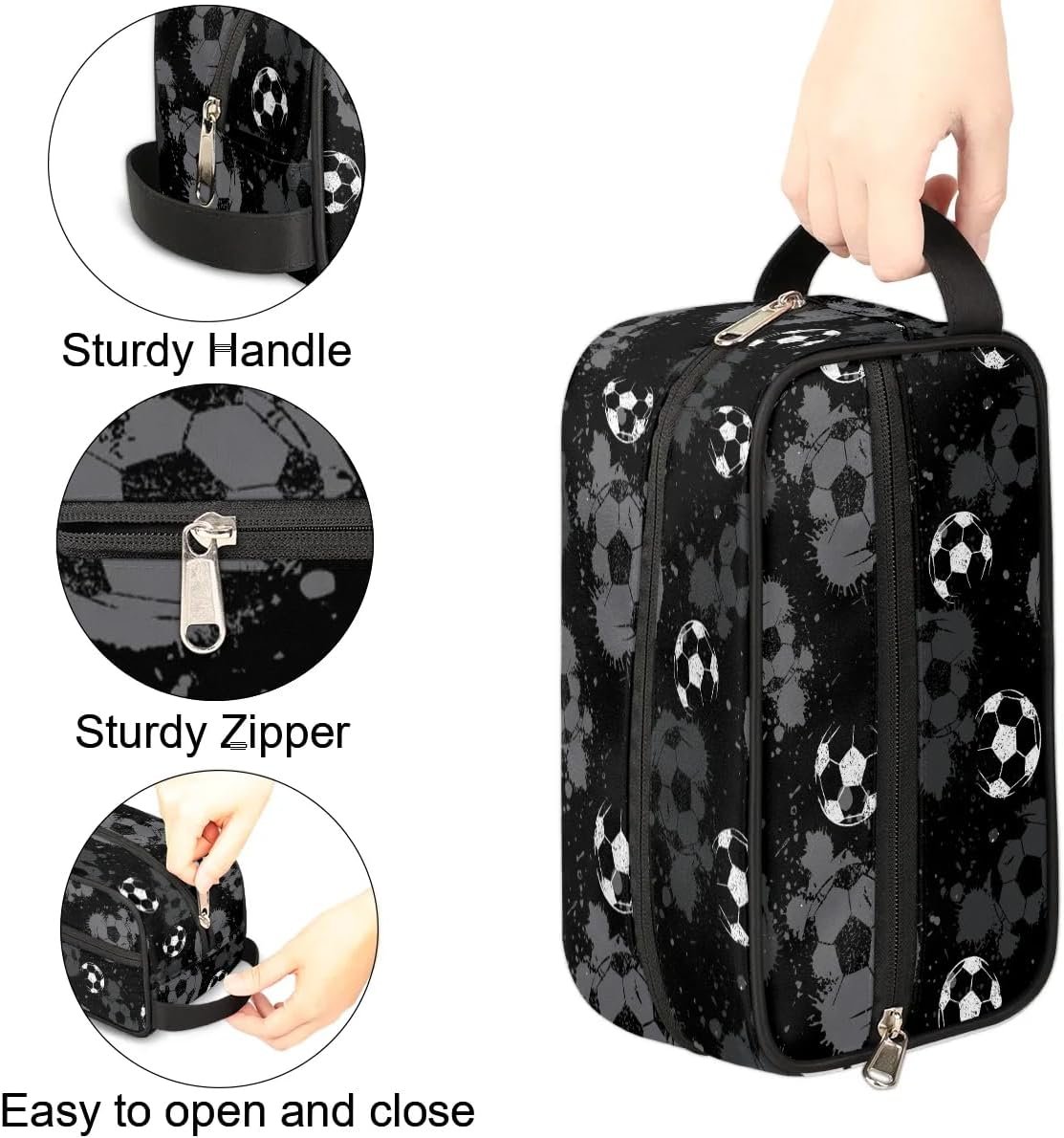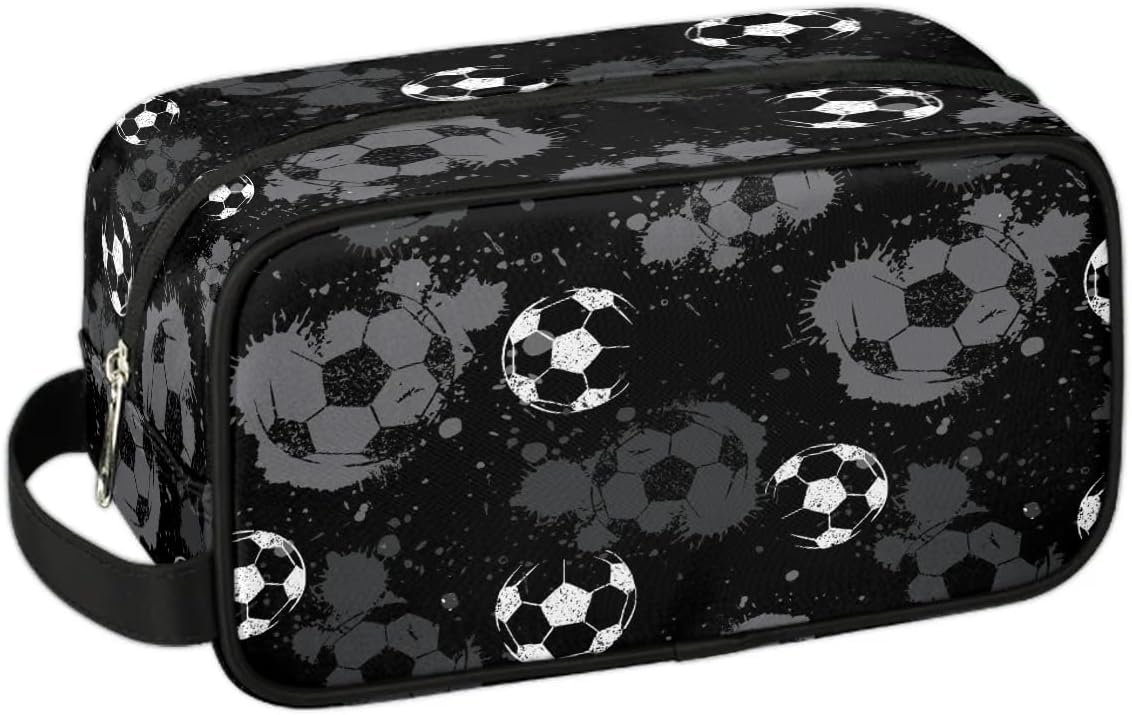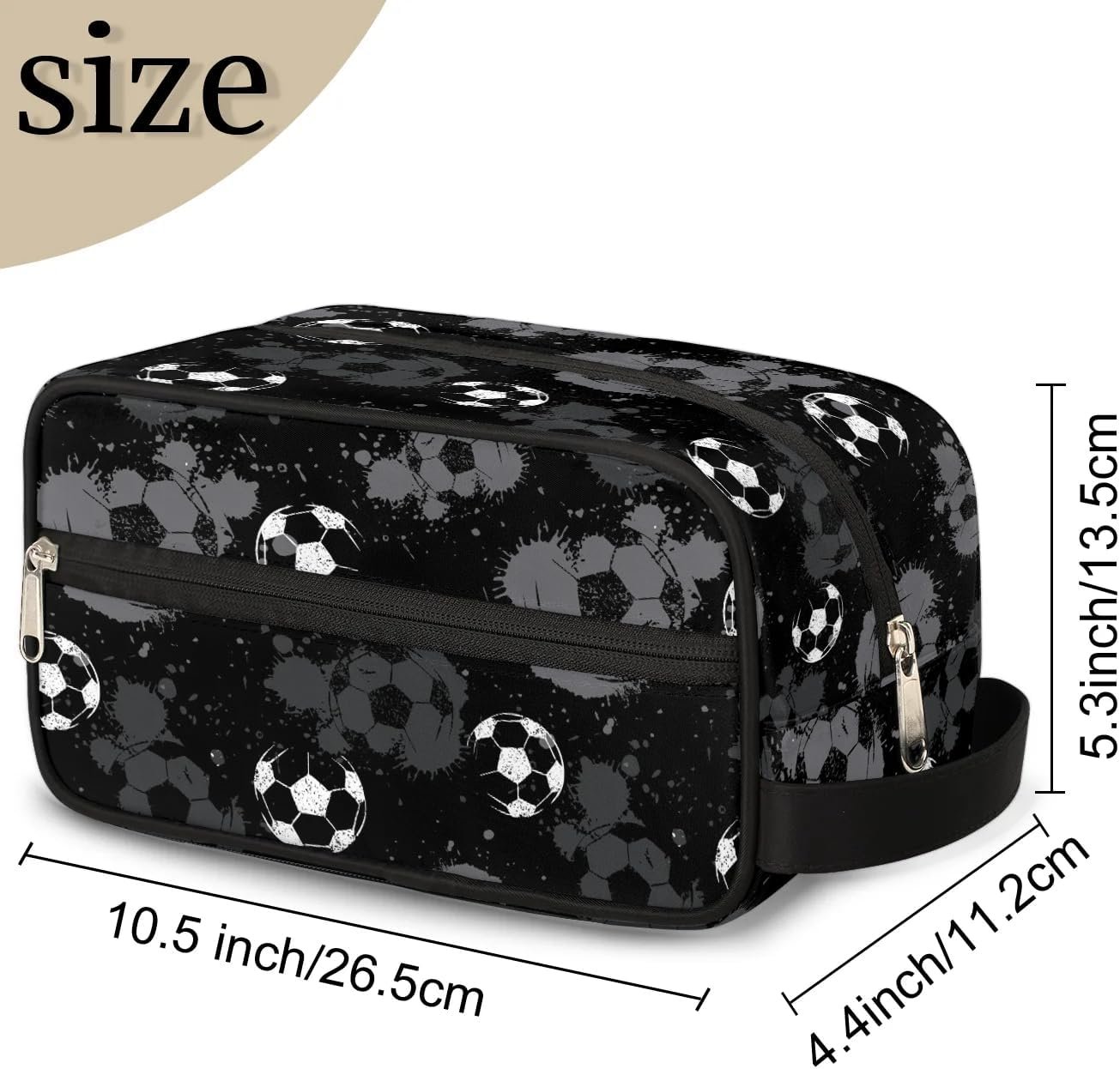 Travel Toiletry Bag for Boys Kids, Black White Soccer Waterproof Hanging Dopp Kit for Men, Shaving Bag with Large Capacity for Travel, Sports, Shower
