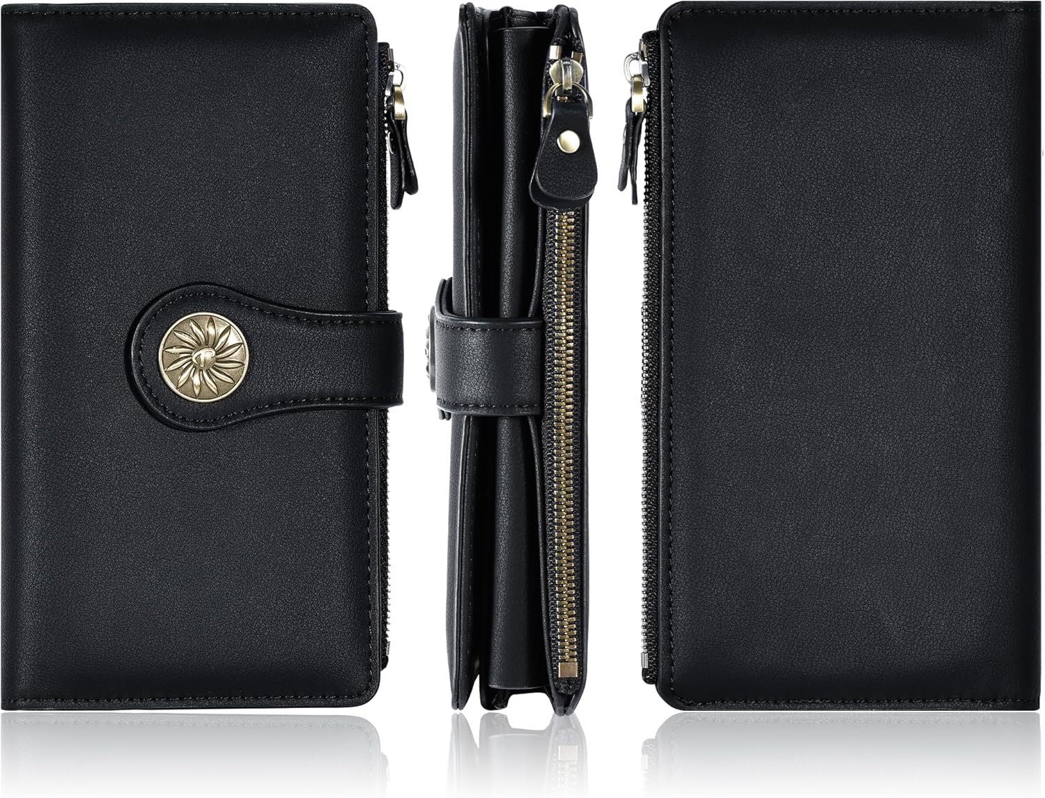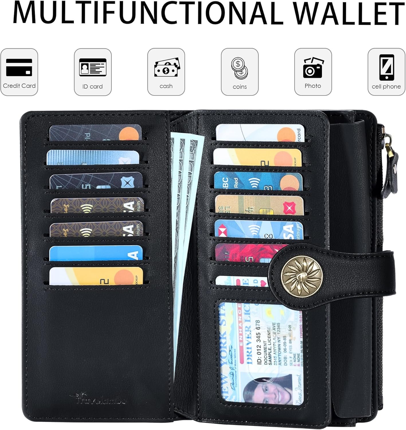 Large Capacity Wallet: 1 large zipper cash slot + 1 large accessory slot (large enough to hold the 11 Pro Max) + 1 receipt slots + 25 card slots + 2 clear windows (for ID and photos) = an extremely powerful multi-functional wallet in the slimmest of sizes