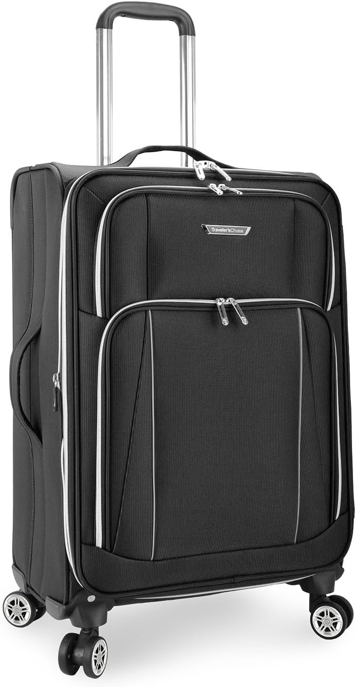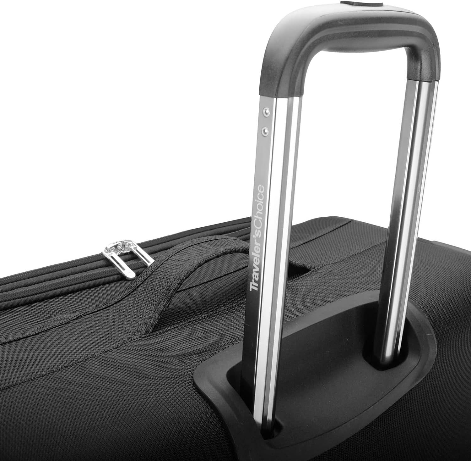 Traveler’s Choice’s Lares Luggage Collection is made of super-light yet durable polyester fabric, with multiple front pockets, aluminum push-lock telescopic handle, 360-degree wheel system provide maximum protection, comfort and mobility enhance your travel experiences. Aluminum handle system allows you to maneuver your bag with ease. The double tubes of the handle system maximize interior space for packing. Dual airplane-style smooth rolling and 360-degree spinning wheel system. Expansion gusset boosts extra packing capacity by 2 inches or up to 25%. Fully lined imprinted interior with multiple zip pockets & two tie-down straps. Large front opening zipper pocket for easy access to travel necessities. Top and side carry handles make for easy lifting. Large size Overall dimensions 31” x 18” x 12” Packing dimensions 27.75” x 17.5” x 11.5” Medium size Overall dimensions 25.75” x 16” x 10.5” Packing dimensions 22.5” x 15.5” x 10” Small size Overall dimensions 21.75” x 14.5” x 9” Packing dimensions 18.5” x 14” x 8.5”