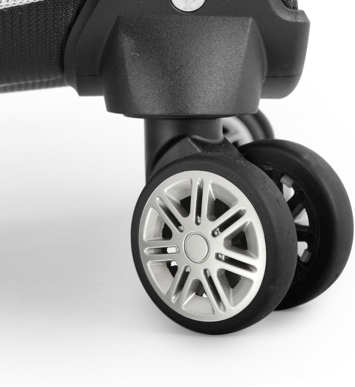 4-wheel dual airplane-style smooth rolling and 360-degree spinning system, lightweight handle with aluminum handle system for easy maneuvering, and double tubes to maximize interior space.