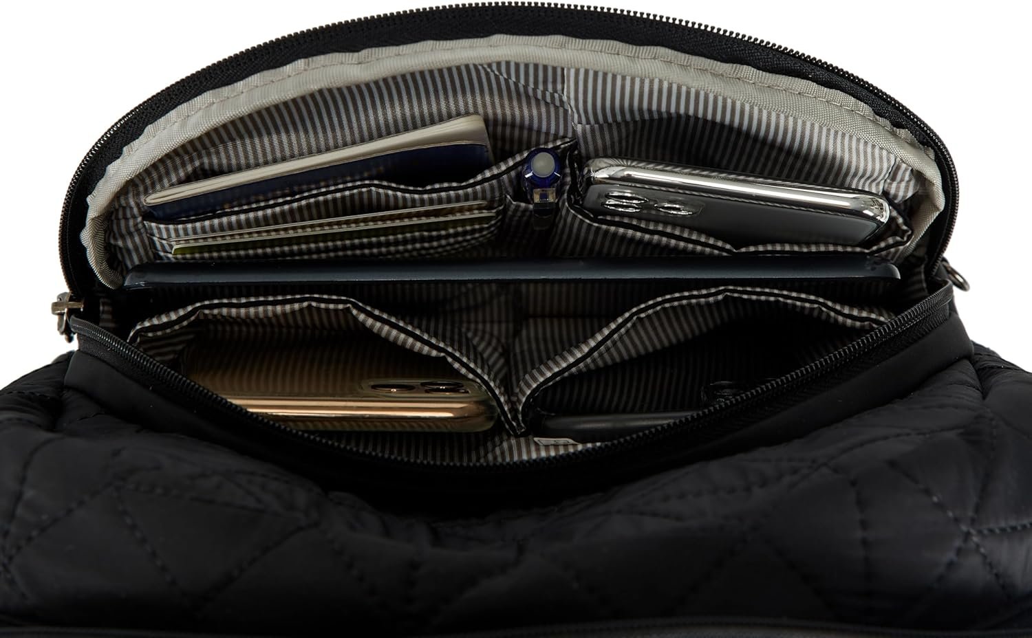 SAFETY & SECURITY ARE IN THE BAG with a built in patented ANTI-THEFT SECURITY SYSTEM protecting your valuables within. It includes: Locking compartments; Slash resistant body; RFID blocking pockets and slots for your cards and passport; and a Slash-resistant straps.