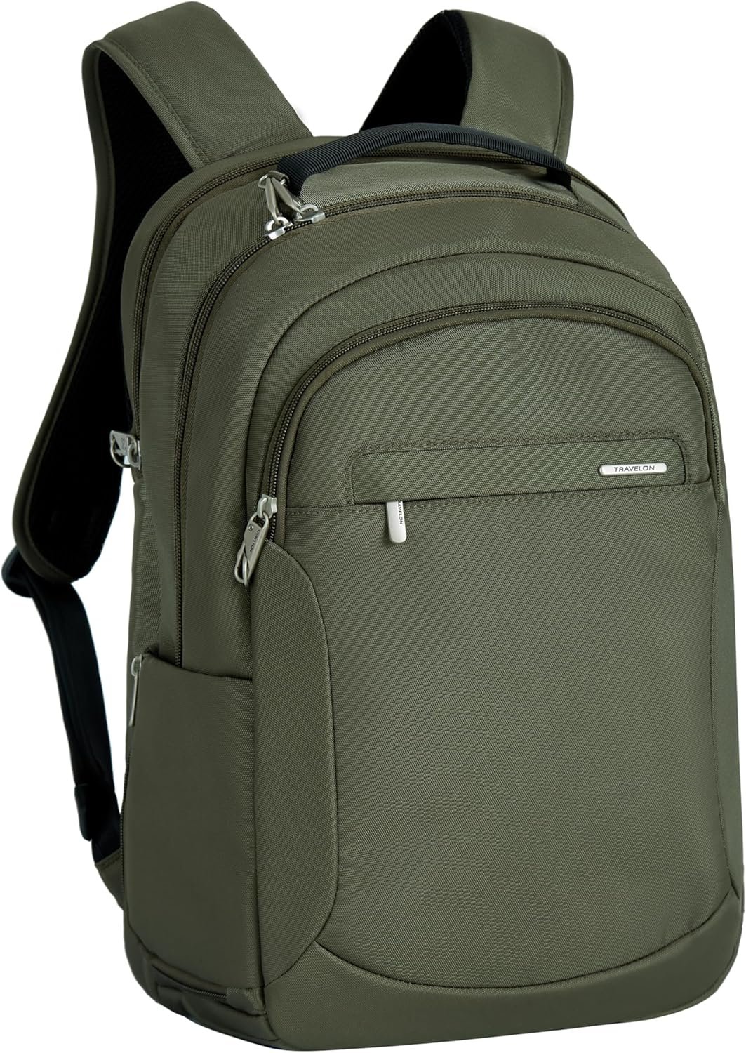 The Travelon Anti-Theft Classic Large Backpack has all the space, organization and protection you’ll need in a day bag or carry-on. Stay organized with 3 compartments. The front compartment has RFID blocking card and passport slots, an open top and zip pocket, 2 pen loops and a tethered key clip. The rear compartment is fleece lined to hold a laptop to 15.6 inches and has a padded pocket for an iPad or tablet. The roomy main compartment has a wall pocket to hold large items. A top grab handle and trolley strap make it versatile and easy to carry. Front zippered pocket for quick grab items. Travel securely and confidently with Travelon’s anti-theft technology, including slash-resistant construction, locking compartments, and slash-resistant straps to keep you and your belongings protected.