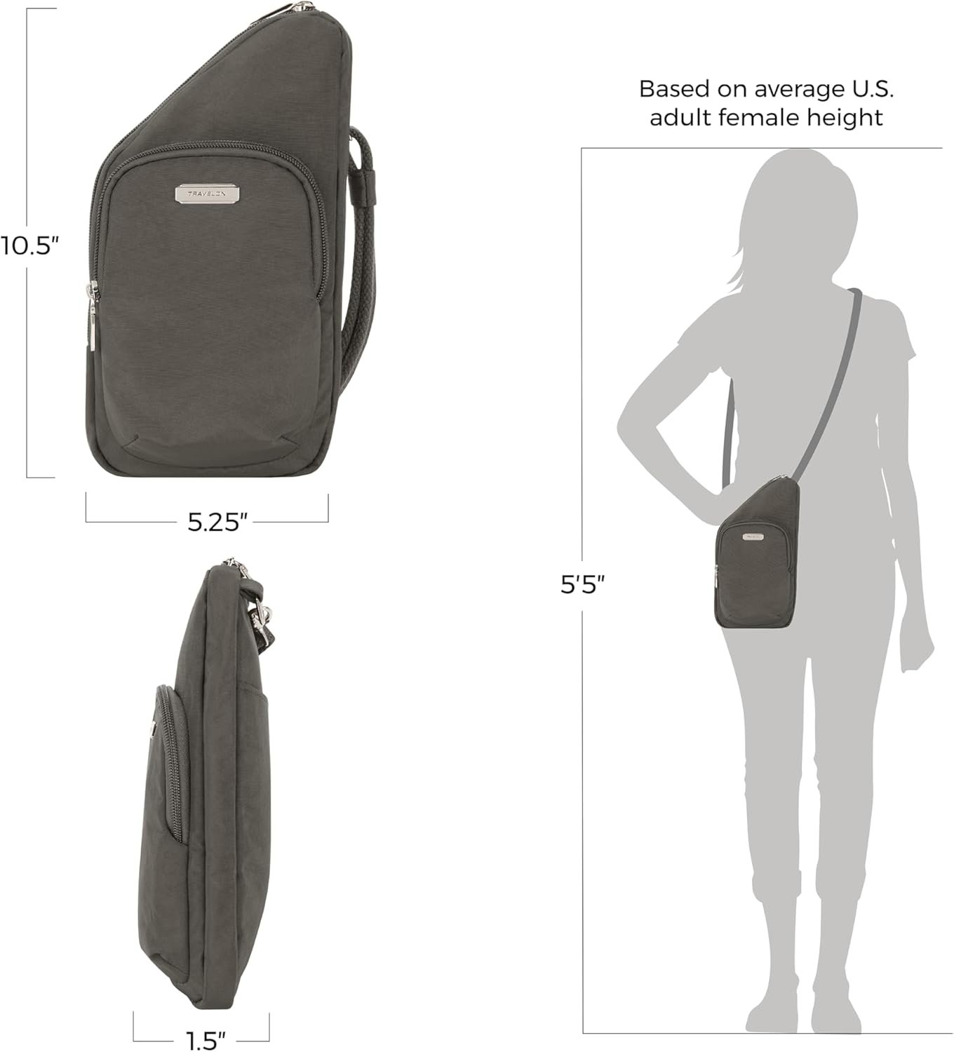 Travelon: Essentials – Anti-Theft – Compact Crossbody Bag – Smoke