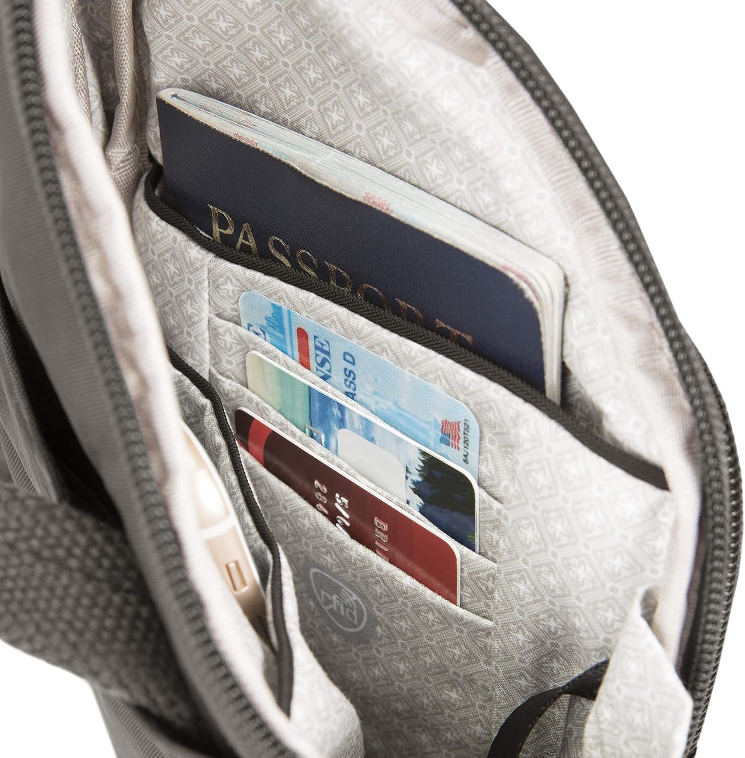 Anti-theft features include slash resistant mesh body panels and straps, locking compartments, along with RFID blocking interior pockets
