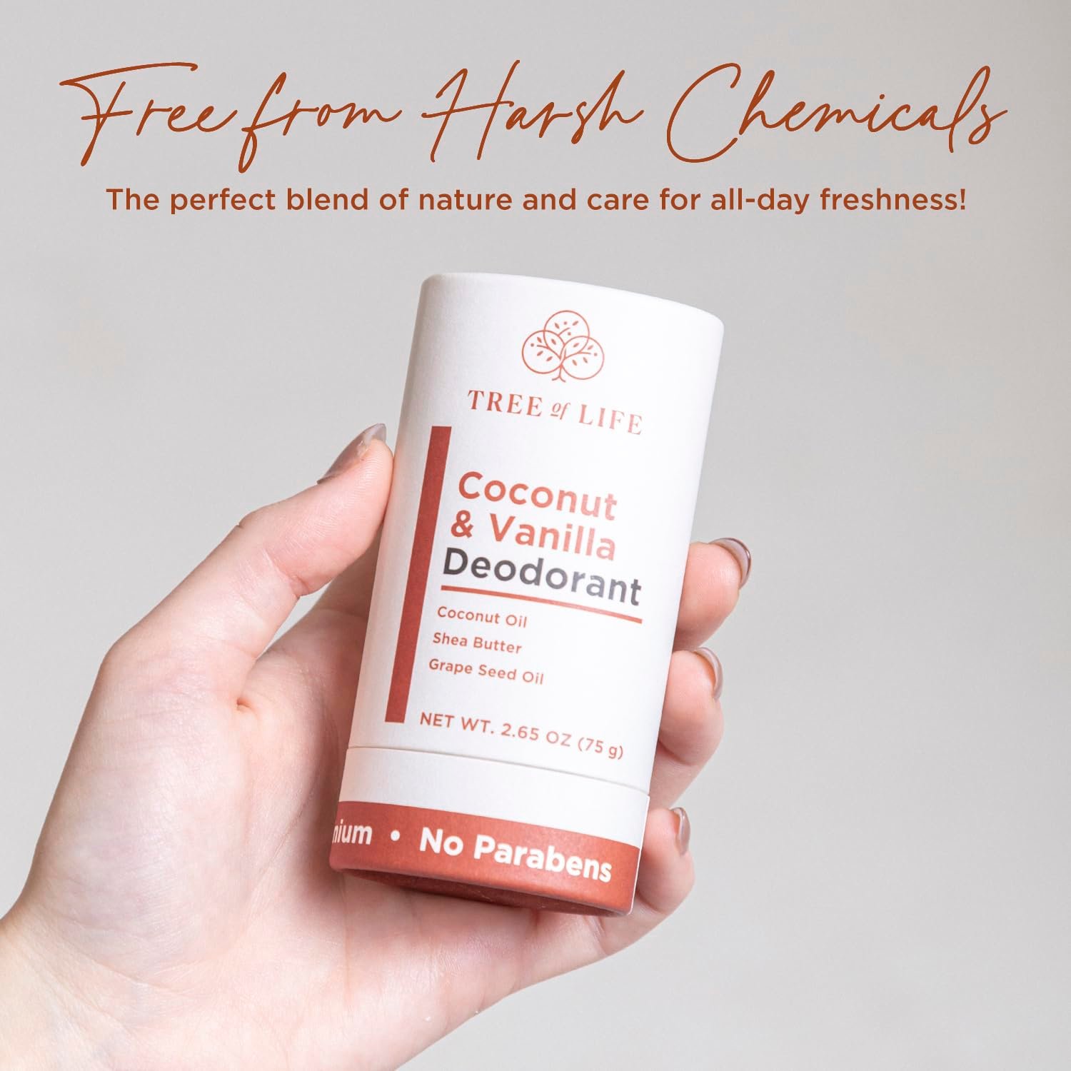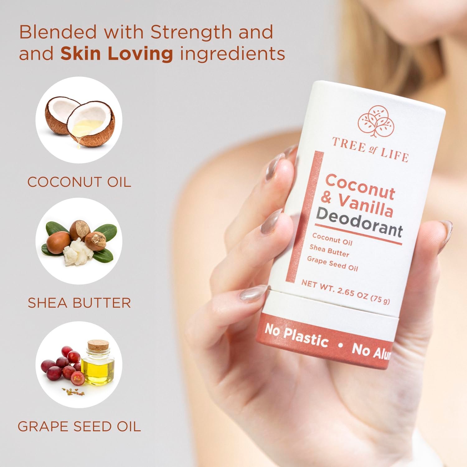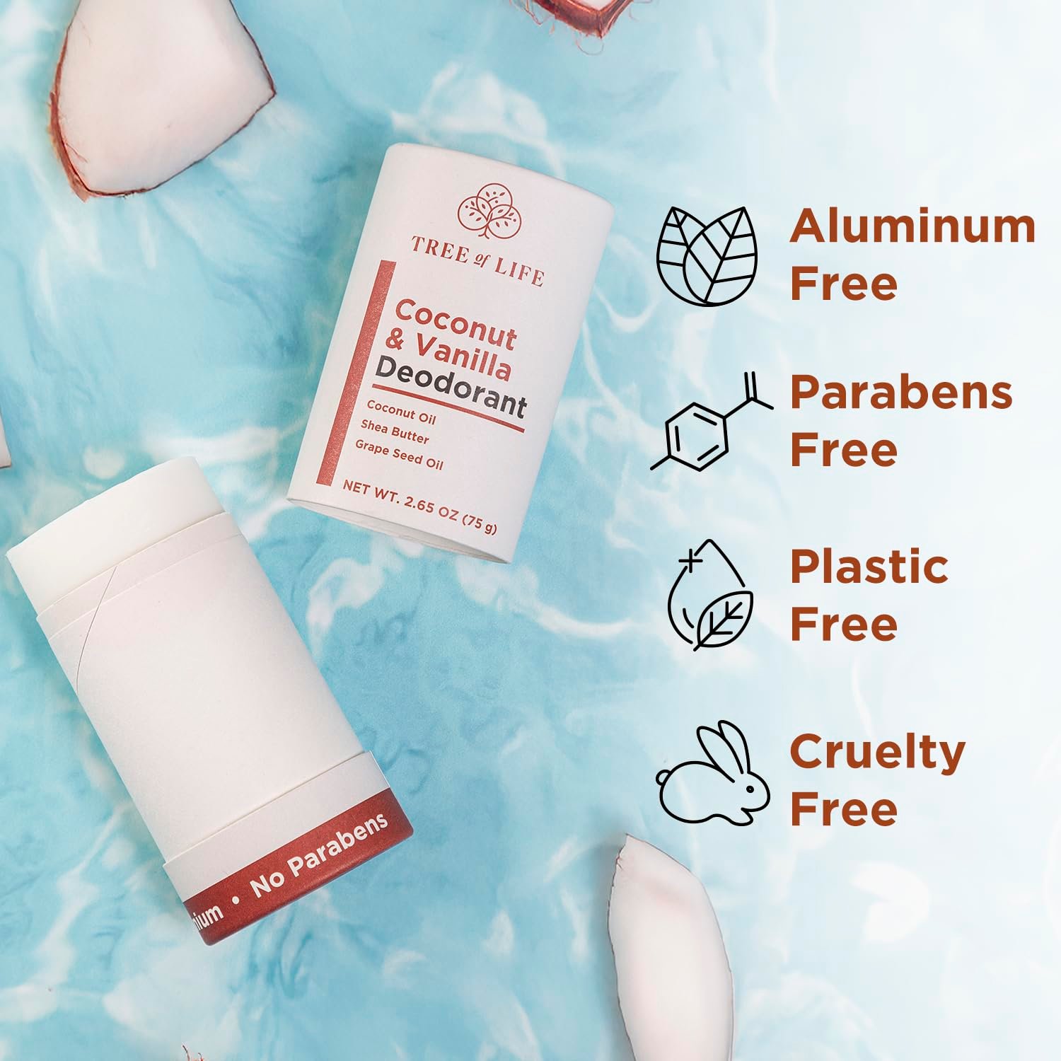 Tree of Life Beauty Coconut and Vanilla Aluminum Free Deodorant for Women – Nourishing Natural Ingredients, Soothing Scent, Smooth Glide with Shea Butter and Coconut Oil – Paraben Free (2.65oz)