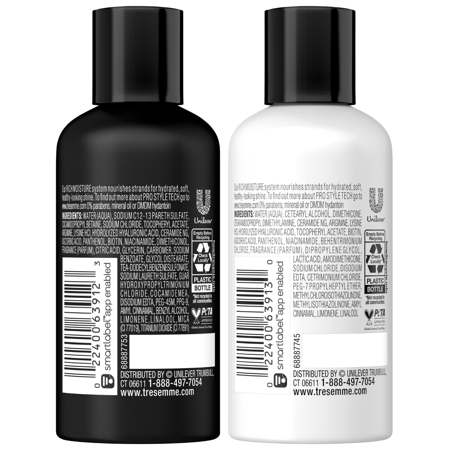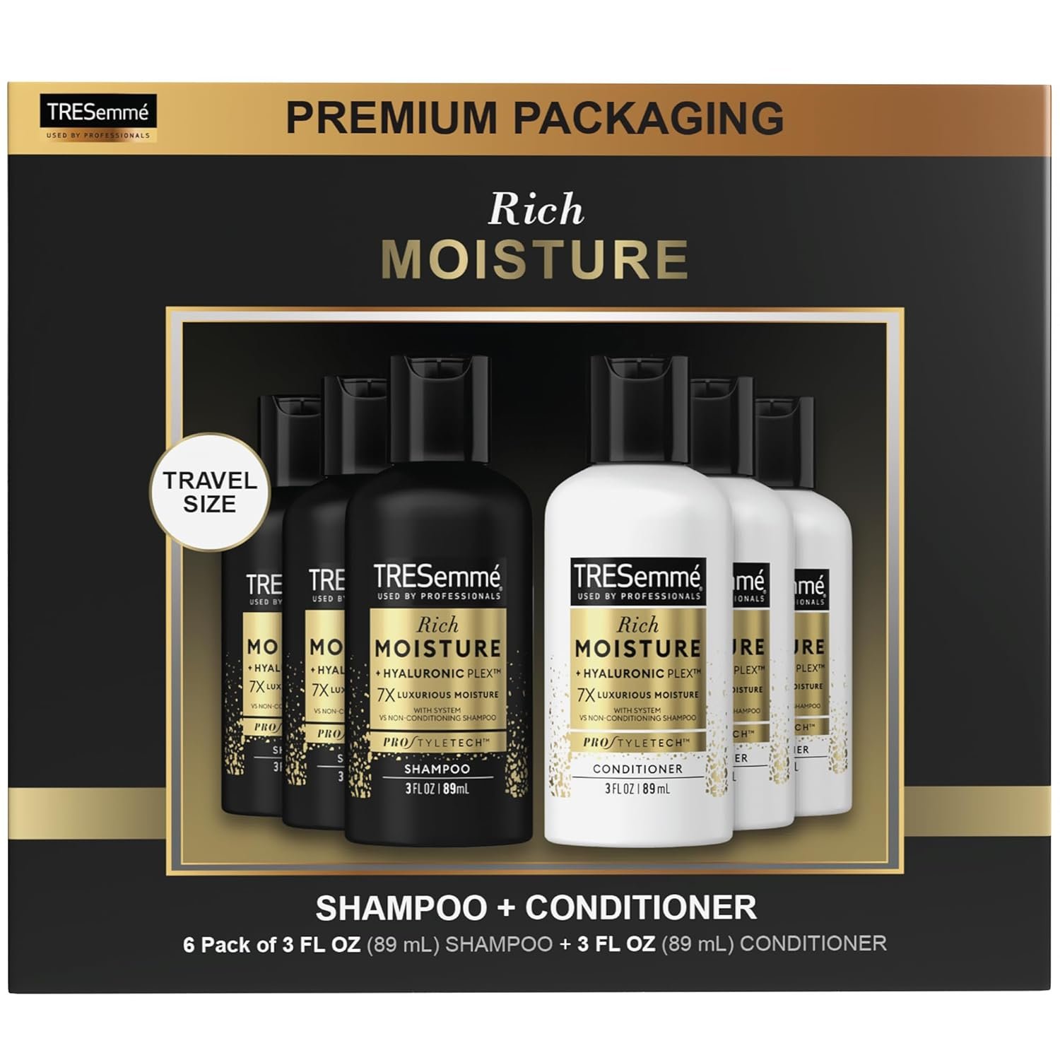 TRESemme Shampoo & Conditioner, Sulfate-Free, Travel Size – Moisture Rich Hair Treatment for Dry, Damaged Hair, Mini Shampoo & Conditioner Sets x 3 for Hair Repair, Scented, 3 Oz Ea (6 Piece Set)