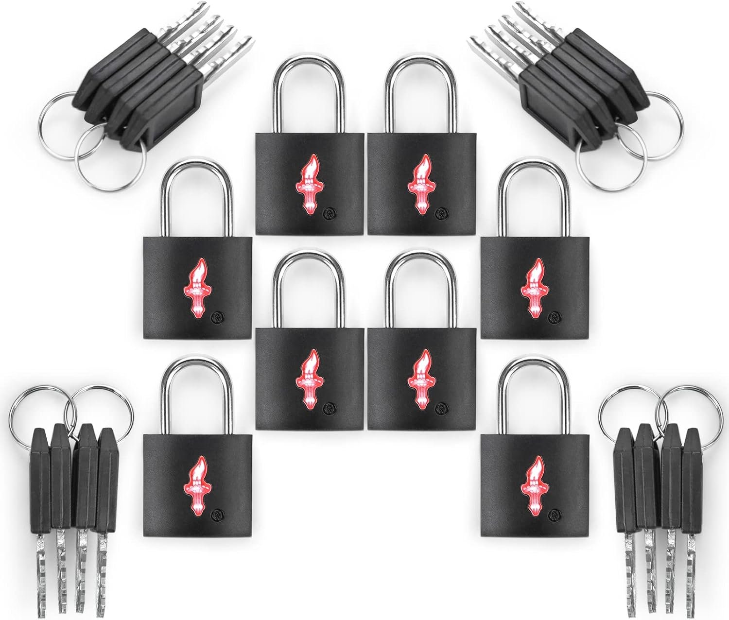 EIGHT PACK WITH SIXTEEN KYES: Includes SIXTEEN keys and EIGHT keyrings suitcase lock tsa approved.