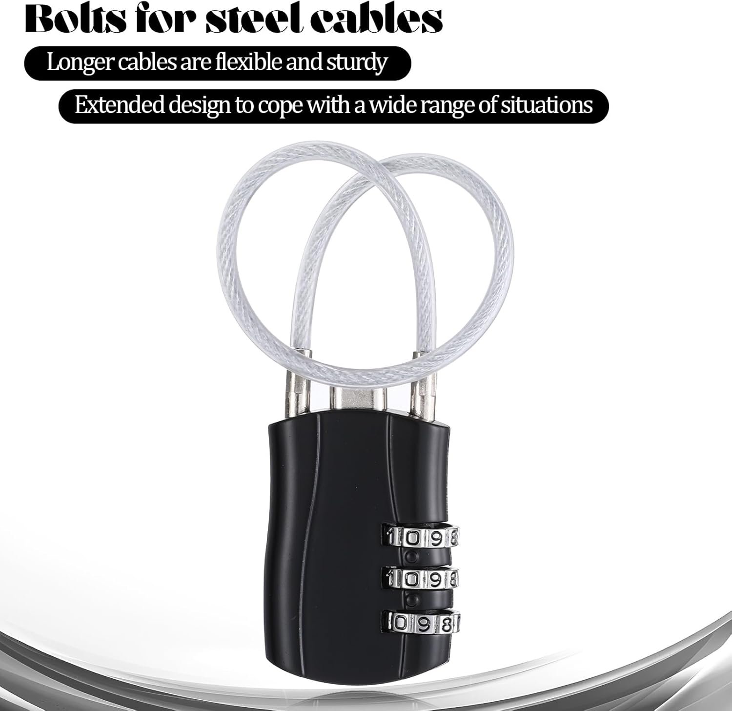 【Heavy-Duty Durability】With a durable metal body and 3mm flexible steel cable, the combination lock for locker offers the perfect balance of strength and portability for a variety of uses, including securing luggage and bicycles