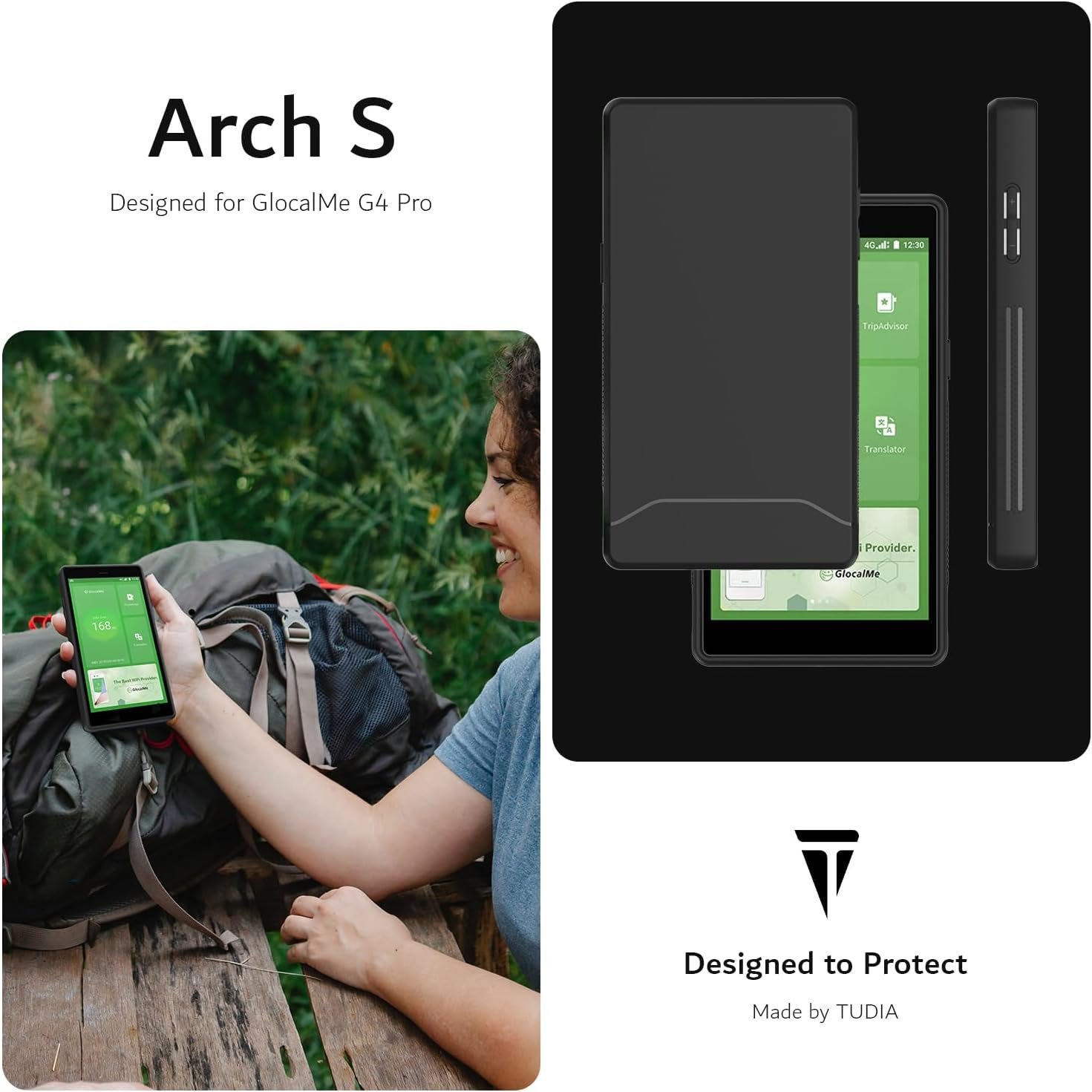 TUDIA Ultra Slim Fit Compatible with GlocalMe G4 Pro Case, [Arch S] Shockproof Slim Lightweight TPU Scratch Resistant Protection for Portable Pocket WiFi Travel Mobile Hotspot Router – Black