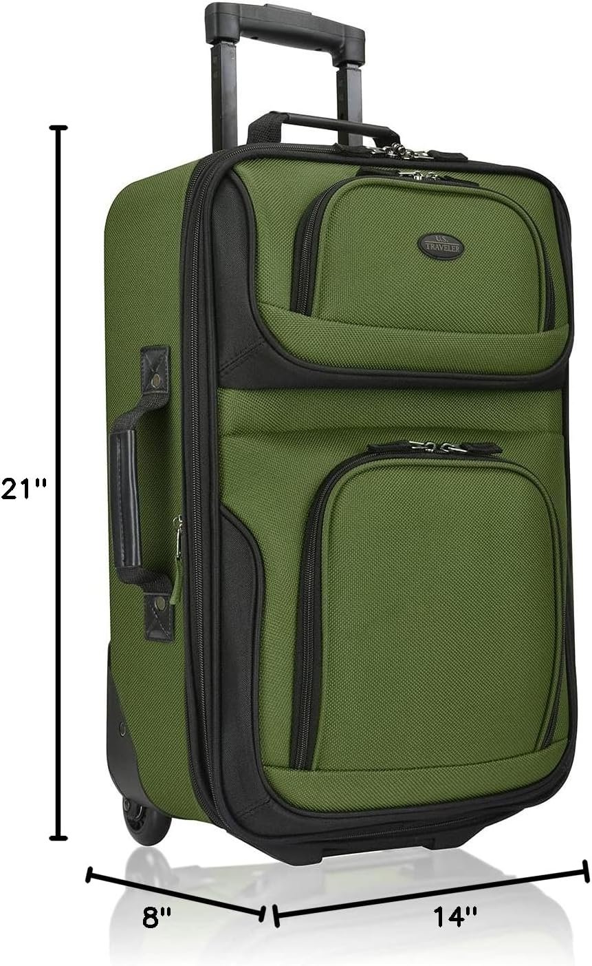 U.S. Traveler Lightweight Softside Suitcase, Rolling 20″ Carry On Luggage, Green, Single