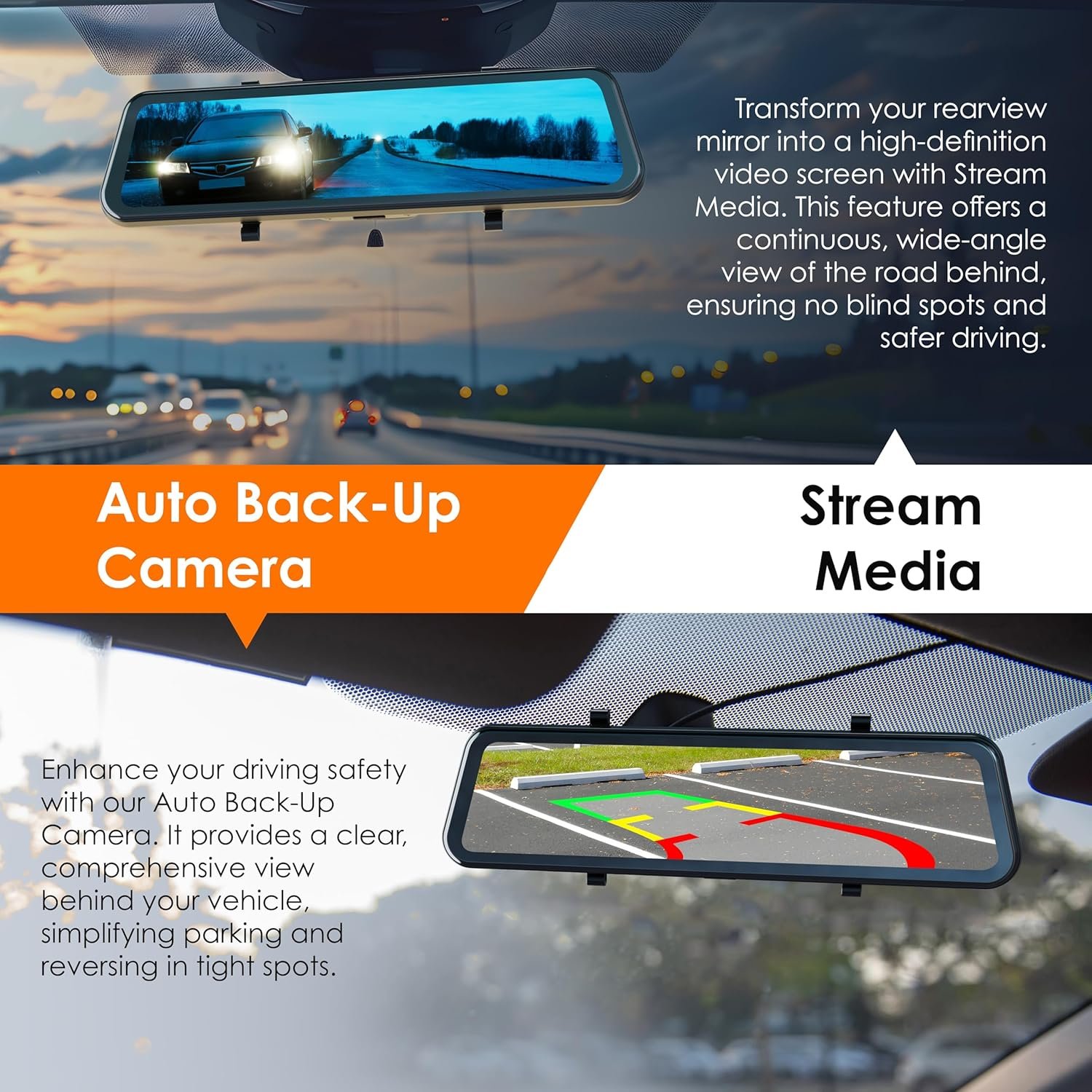 Stream Media & Auto Backup Camera: Simplify your parking and reversing with the auto-backup camera feature, offering improved visibility in tight spaces. Switch easily between front and rear views, and stream media to monitor blind spots, enhancing overall driving awareness.