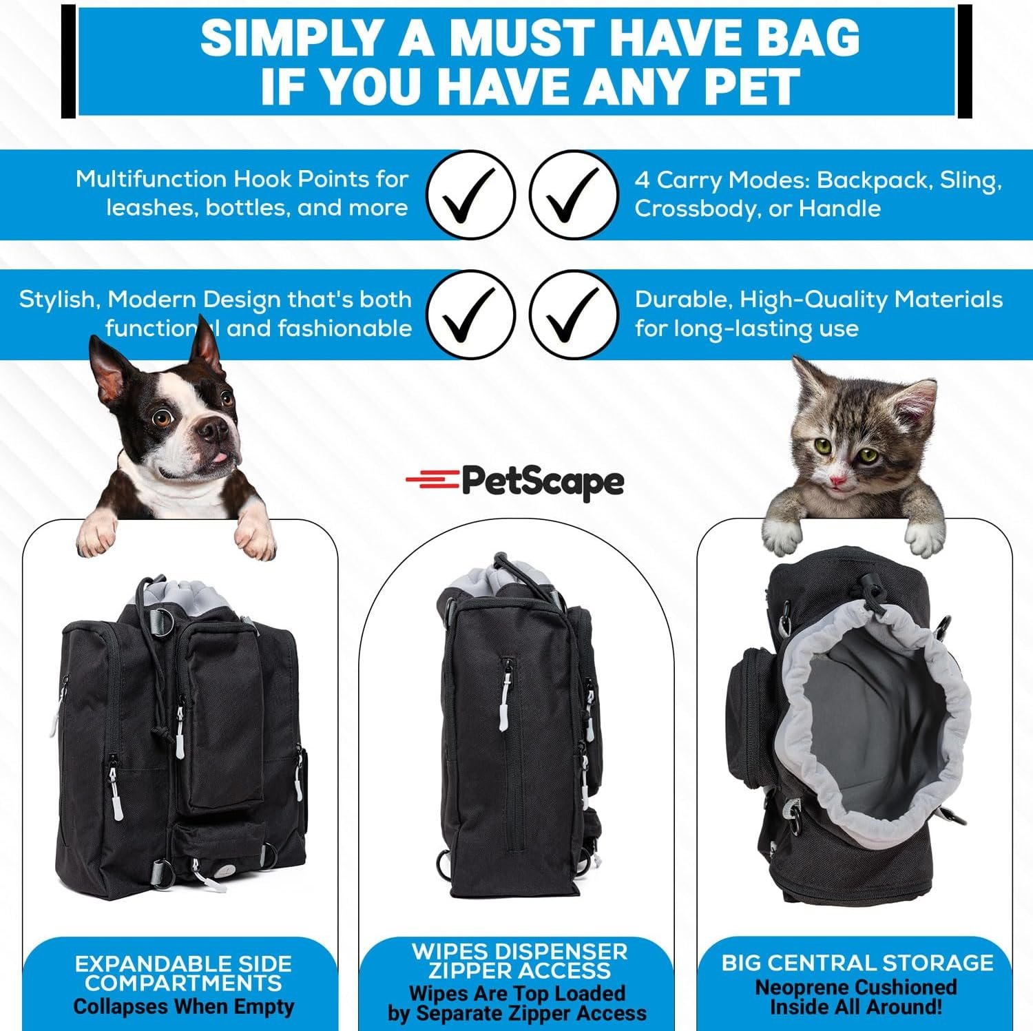 and wipes, you’ll have everything you need at your fingertips during walks or outings with your furry friend.