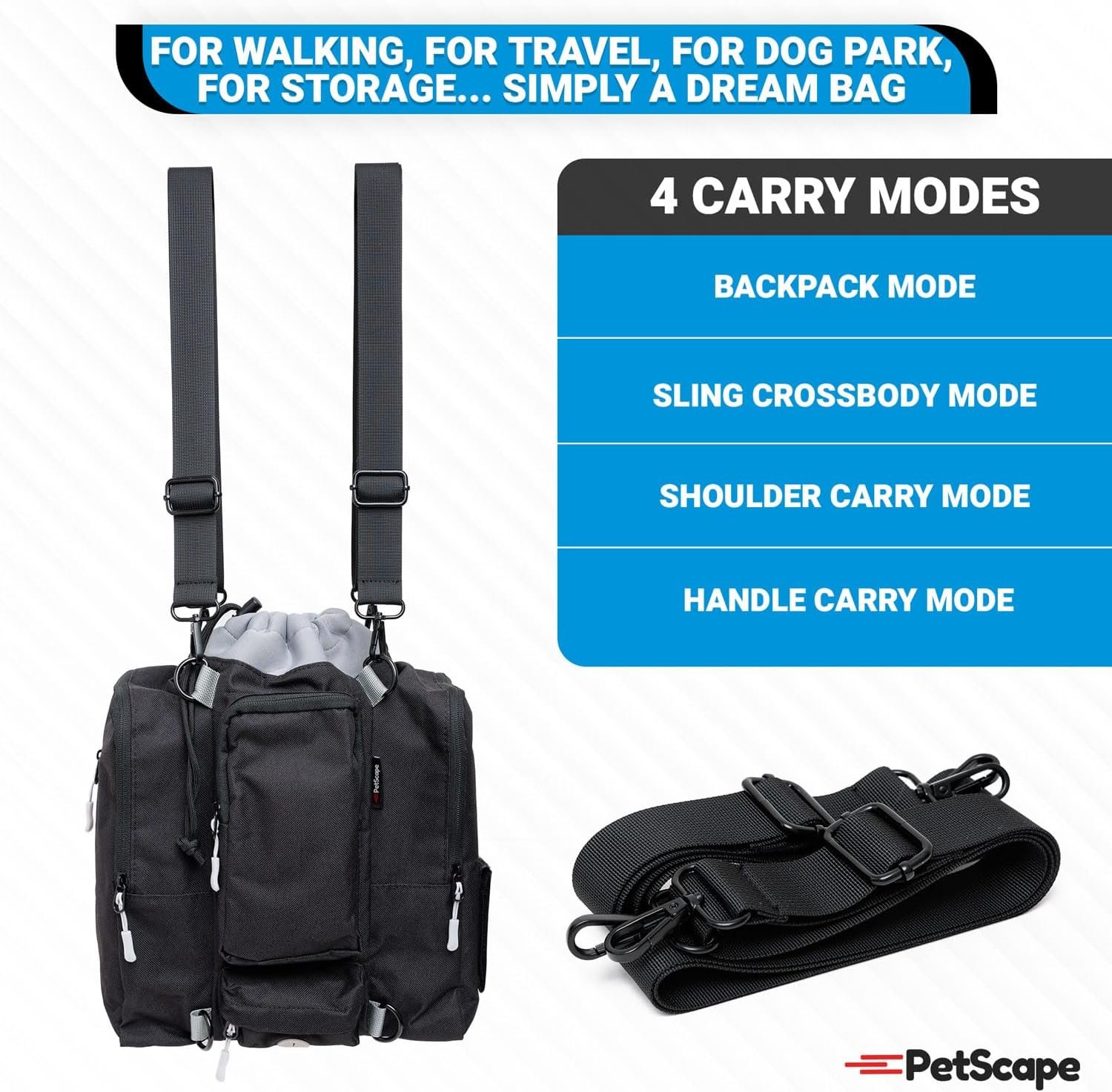 Adaptable Carrying Options – Enjoy unparalleled versatility with detachable straps that enable four different carry modes: backpack, sling crossbody, shoulder, or handle carry. Adjust the straps to suit your comfort and style, making this pet travel bag a perfect companion for any activity or outing!