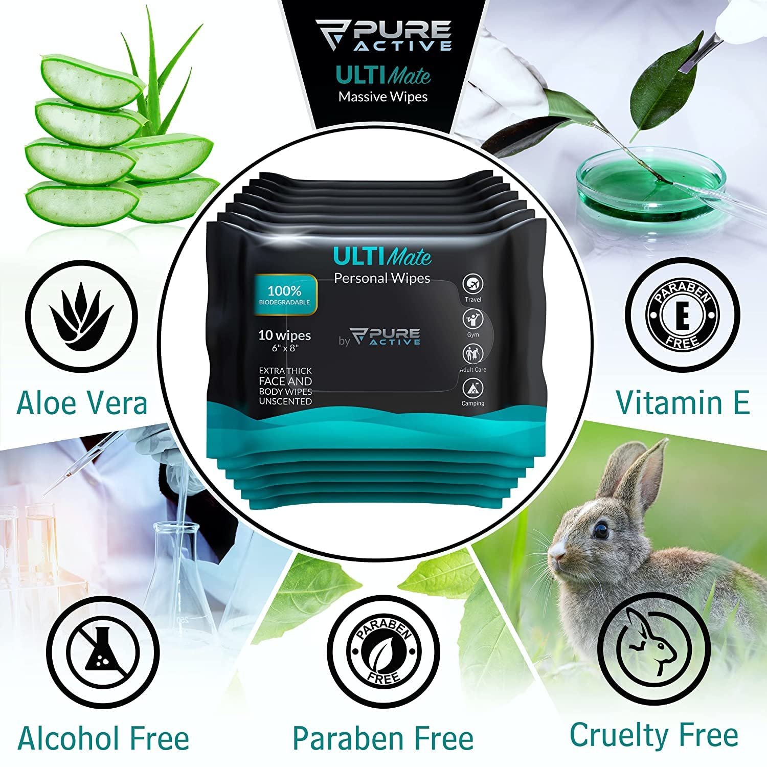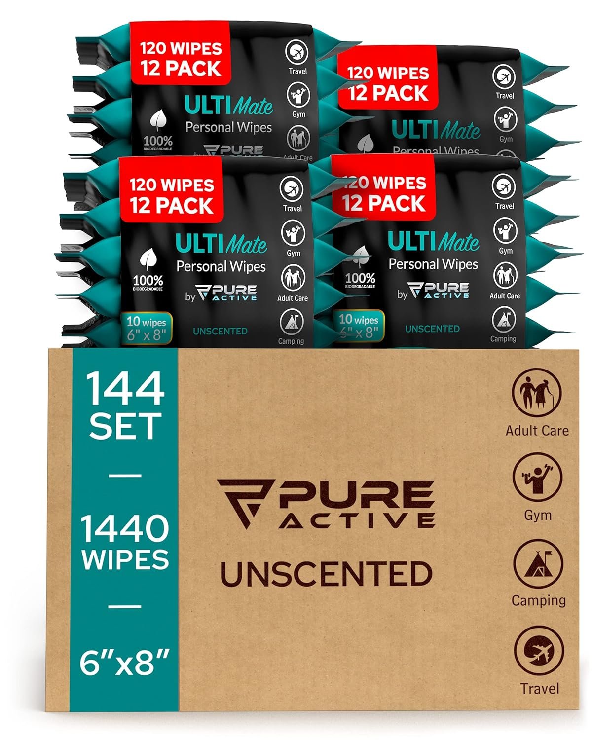 Ultimate Shower Body and Face Wipes, Biodegradable Personal Hygiene Body Cleansing Wipes for Men for After Gym Travel Camping Adult Bathing Wipes Scented (Multipack 1440 Wipes, Unscented)