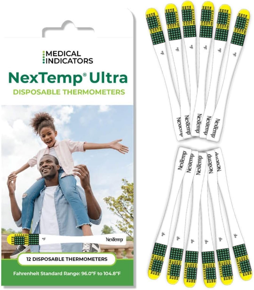 Ultra Single-Use Thermometers – Individually Wrapped Disposable First Aid Supplies with High-Accuracy Readings, for Work, Home, and Travel, Fahrenheit, 12-Pack, by Medical Indicators Inc.