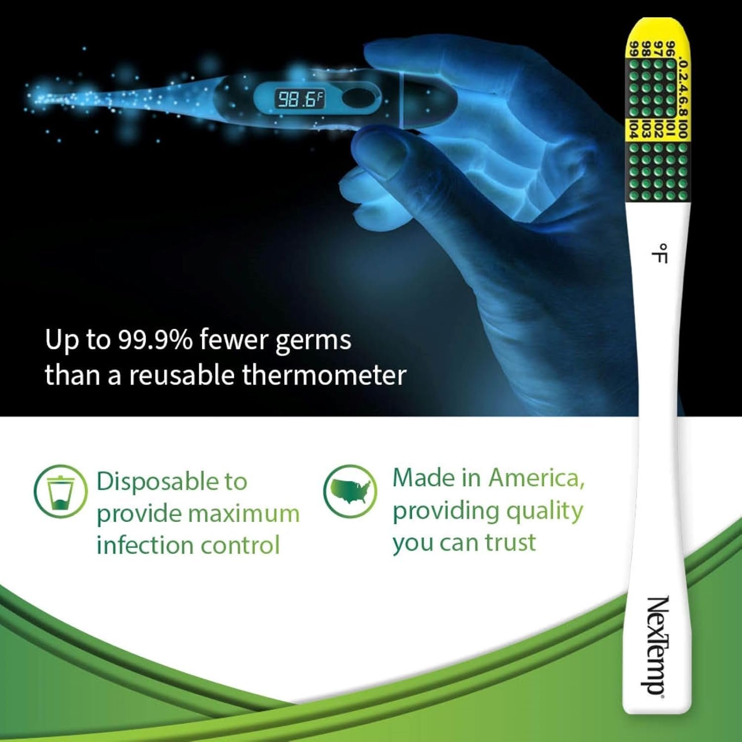 HIGH ACCURACY SINGLE-USE THERMOMETERS: NexTemp Ultra individually wrapped disposable thermometers provide rapid, high-accuracy temperature readings within a minute and display results for a full 60 seconds