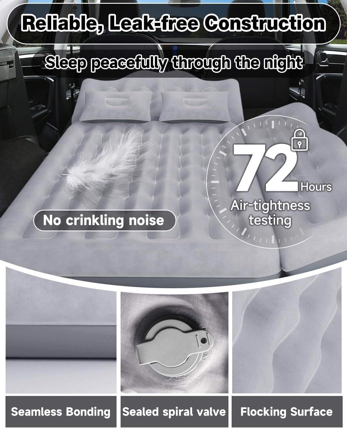 Our air mattress has versatile applications, serving as a car air mattress, SUV air mattress, and suitable for car back seats and SUV back seats. Additionally, it can be used in guest bedrooms, hotels, tents, and camping sites. You can use it anytime, anywhere based on your needs.