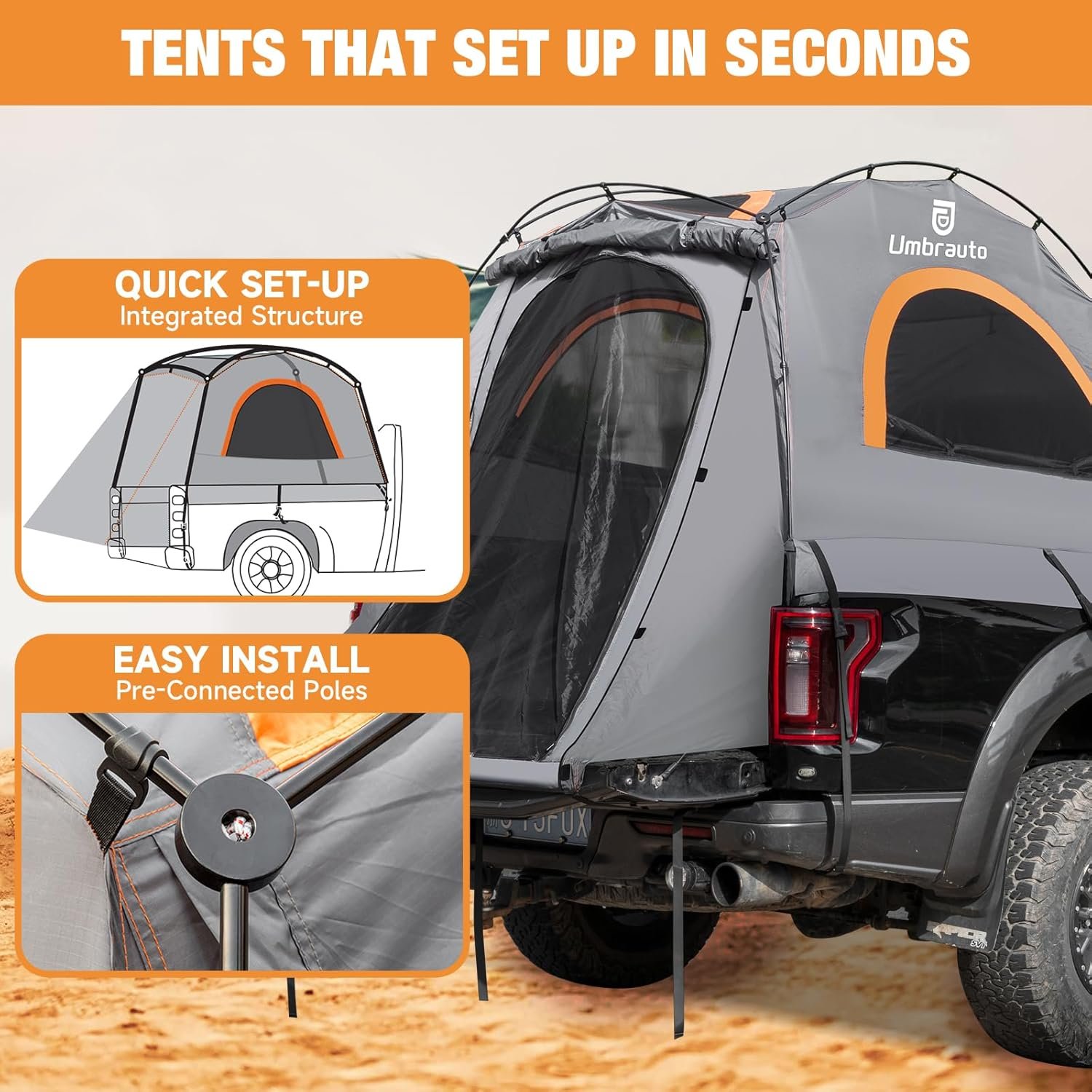 Umbrauto Truck Bed Tent: 6.4-6.7ft Truck Tent Easy Setup for Camping, 3000mm Waterproof Pickup Truck Tent for 2 Person, Ford, GMC, Toyota, Chevy, Dodge, Nissan, Grey & Orange