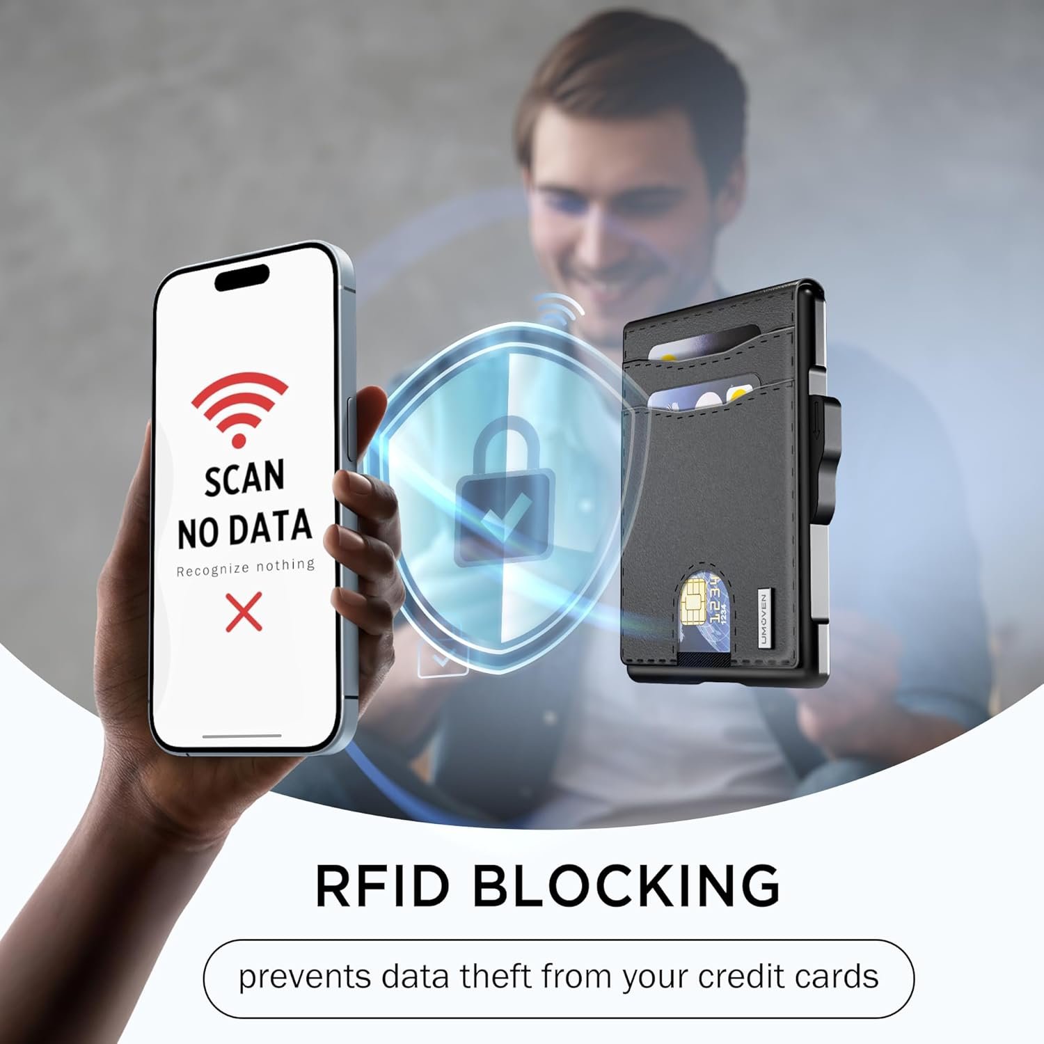 【Advanced RFID Blocking】: Rest assured that your credit cards, debit cards, and driver’s license are protected from unknown scanning devices. Our RFID Blocking wallet is equipped with built-in RFID blocking technology, ensuring your personal information remains private and secure. Say goodbye to worries about electronic skimming and enjoy peace of mind with our smart wallet.