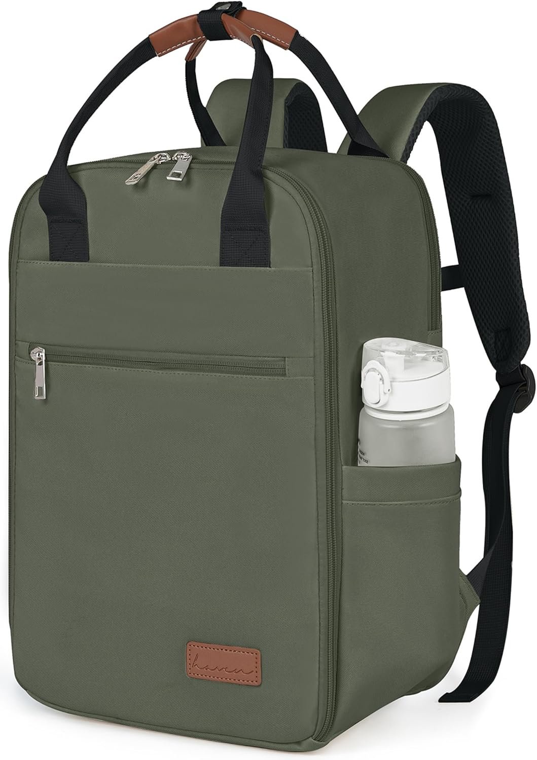 Unisex Small Olive Green Travel Backpack with Laptop Compartment, Water Resistant, Anti-Theft, 18x14x8 Personal Item, Frontier, Spirit, Delta, United, 20L, 14″ Laptop