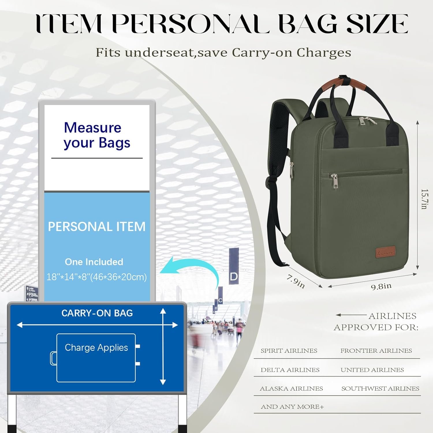 【Personal Item Backpack】Our small travel backpack size:15.7*9.8*7.9 inch. Suitable for most airlines as personal item travel bag 18×14 x 8 inches. it can be placed in the overhead luggage compartment and under seat luggage for airlines, suitable for Delta,Spirit,Frontier,Alaska,United Airlines and other airlines