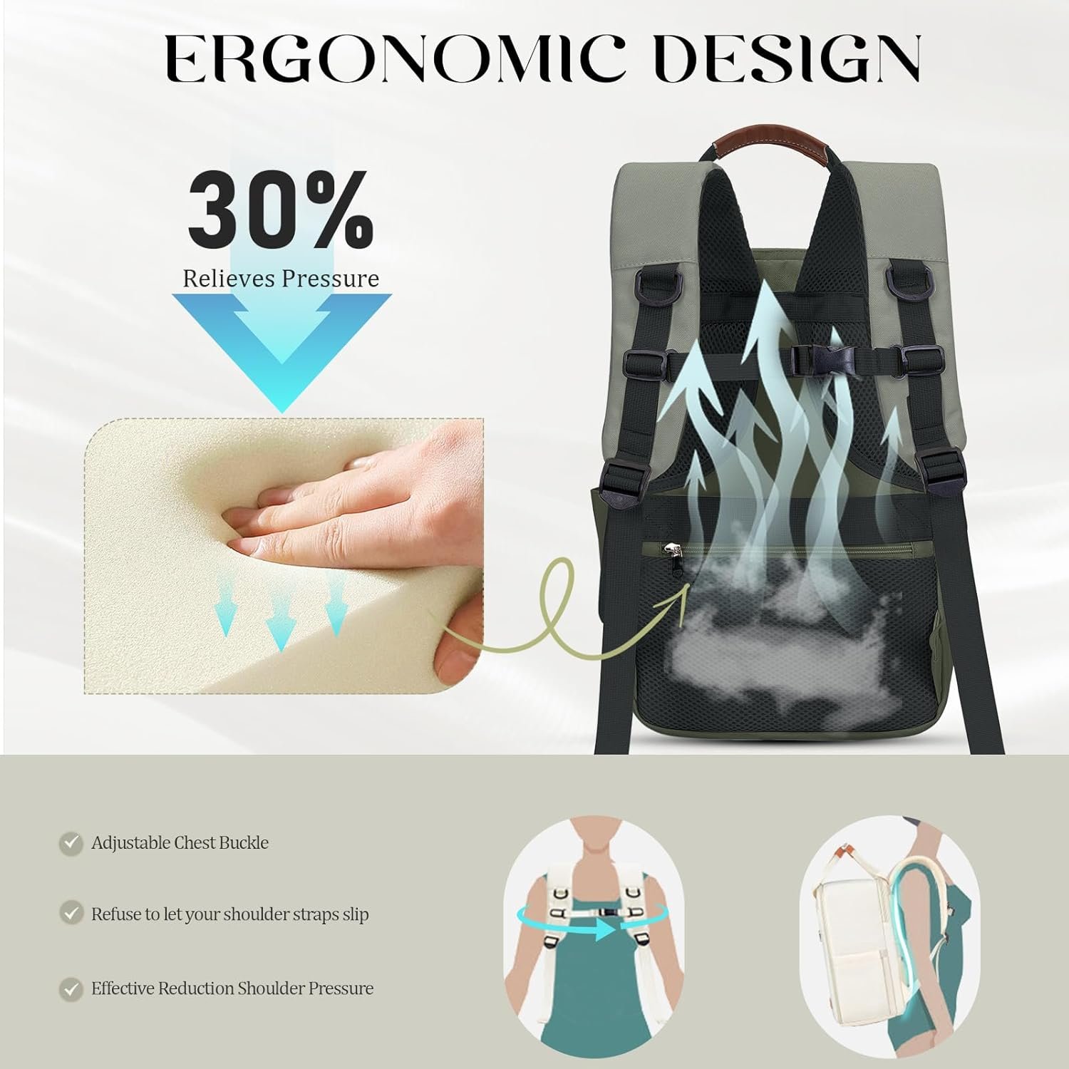 【Sturdy Materials & Anti Theft Backpack】Made of high-density polyester, scratch-proof, tear-resistant, and waterproof backpack for women travel bag.with double-way strong metal zippers and reinforced stitching; Design an anti theft zipper pocket to keep your valuables safe and secure.also this backpack with luggage strap to attach the backpack to your suitcase