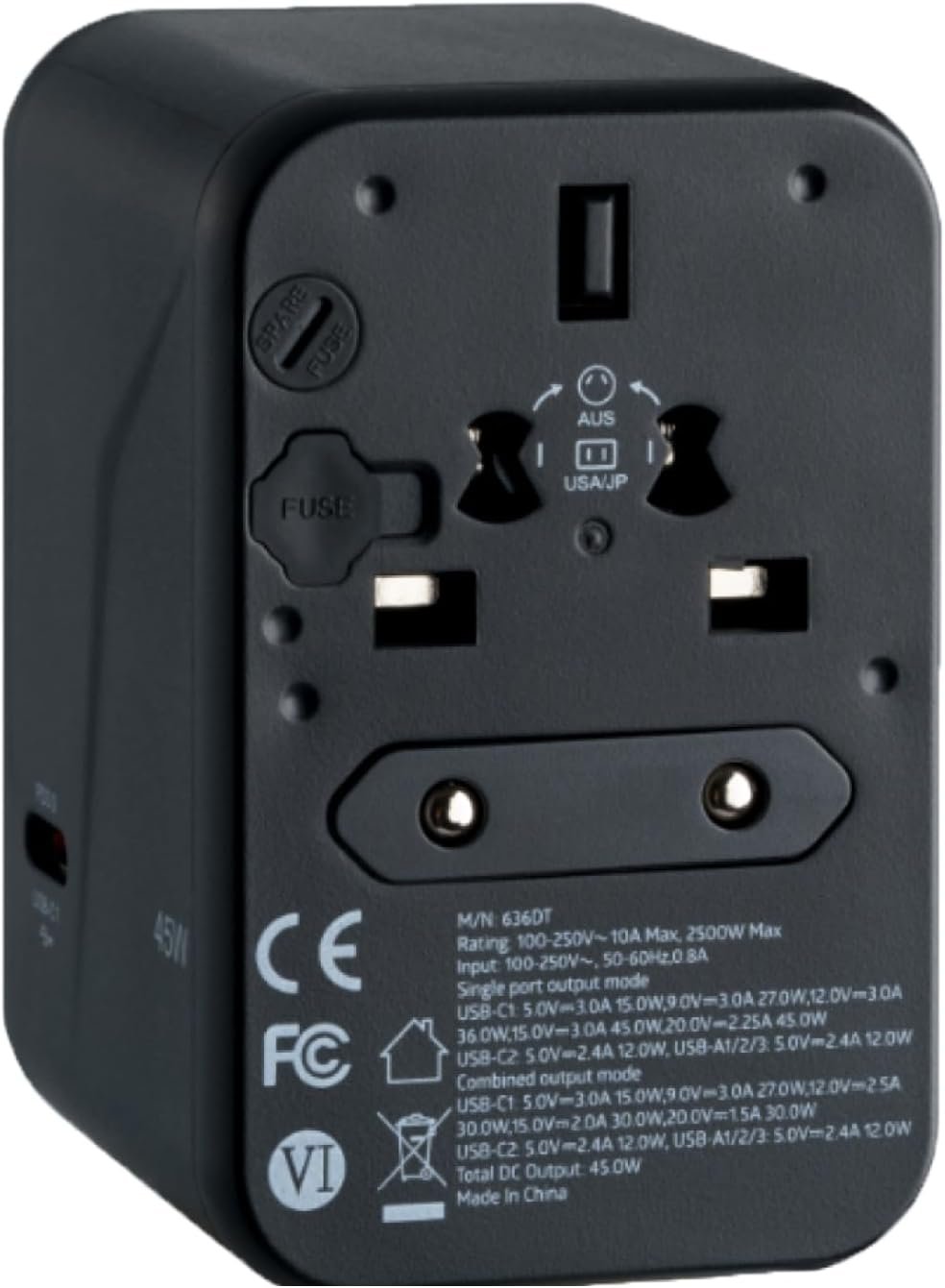 EXTENSIVE SAFETY: This travel adapter will replace your surge protector power strip. Includes a convenient, easy-to-replace 10A fuse, increasing maximum safety.