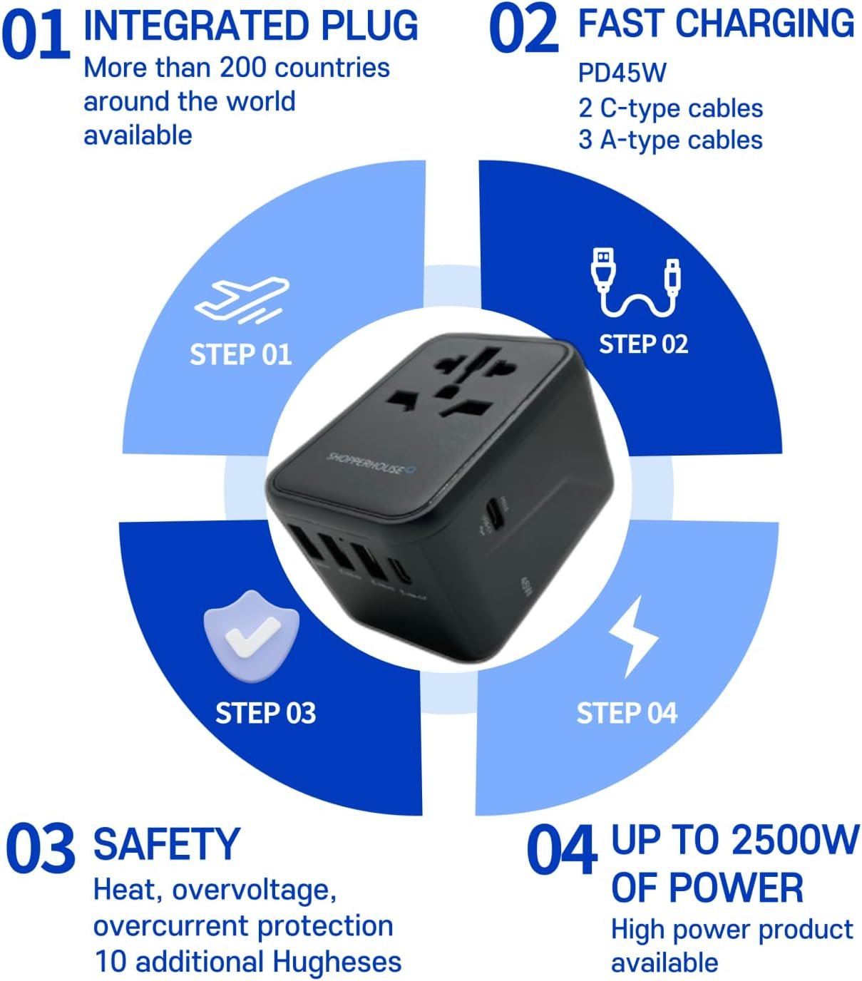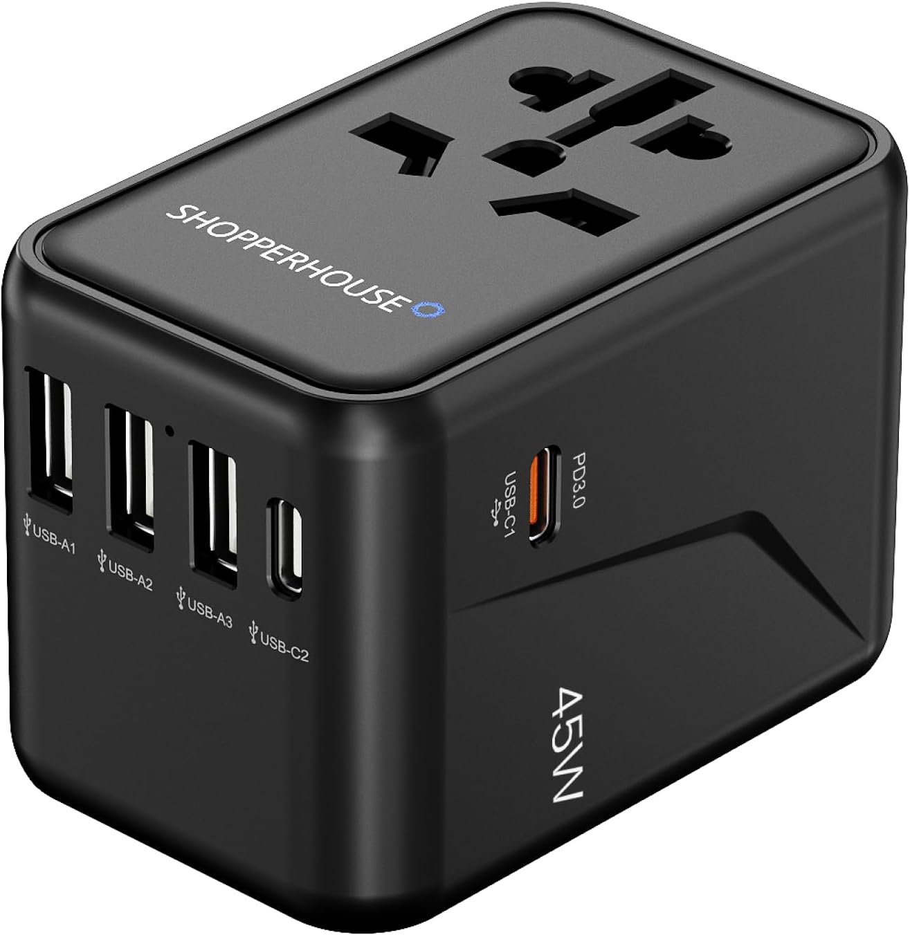 45W FAST CHARGING: Shopperhouse’ Travel Adapter is a very fast charger 2x faster than your usual iphone charger, samsung fast charger, and iphone 15 charger!