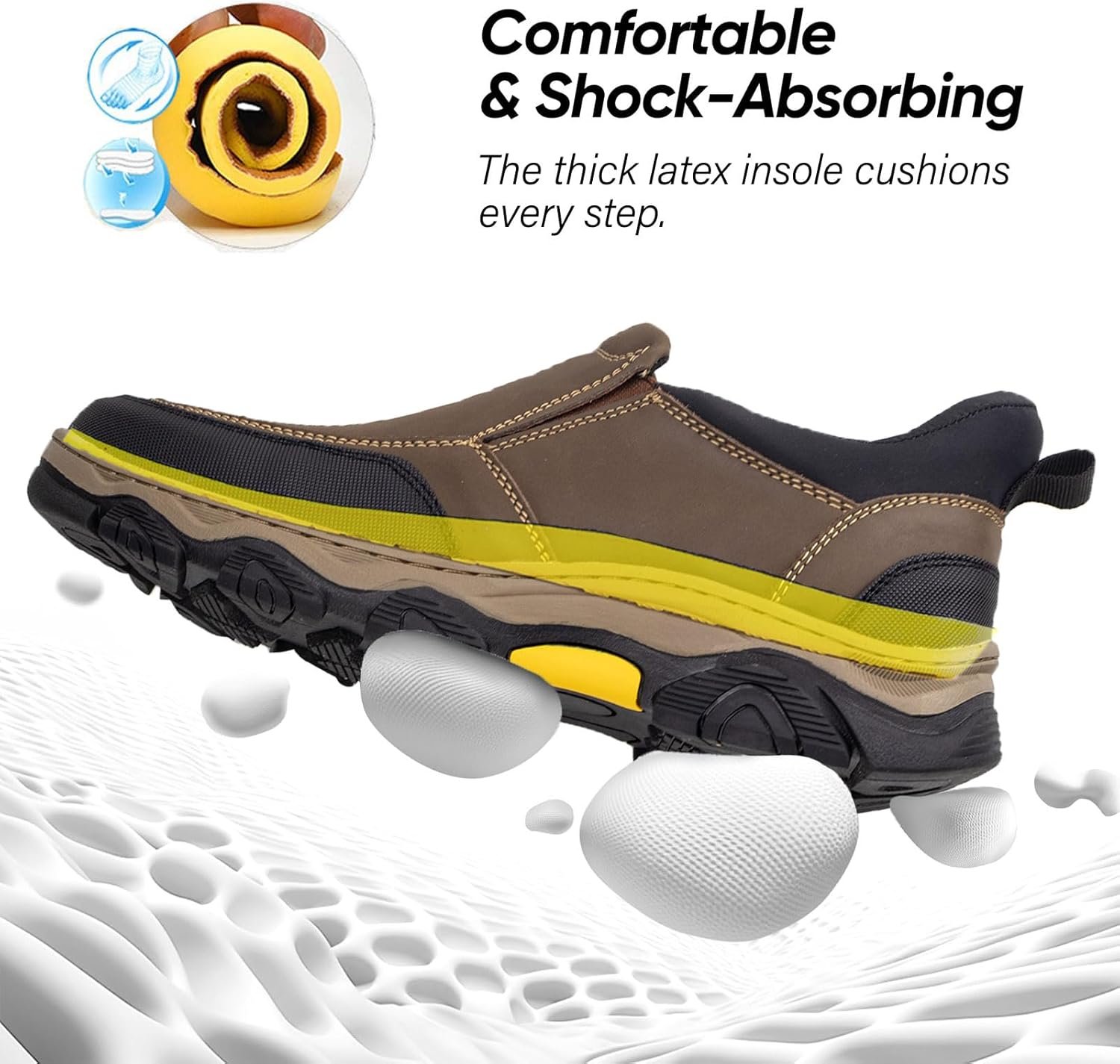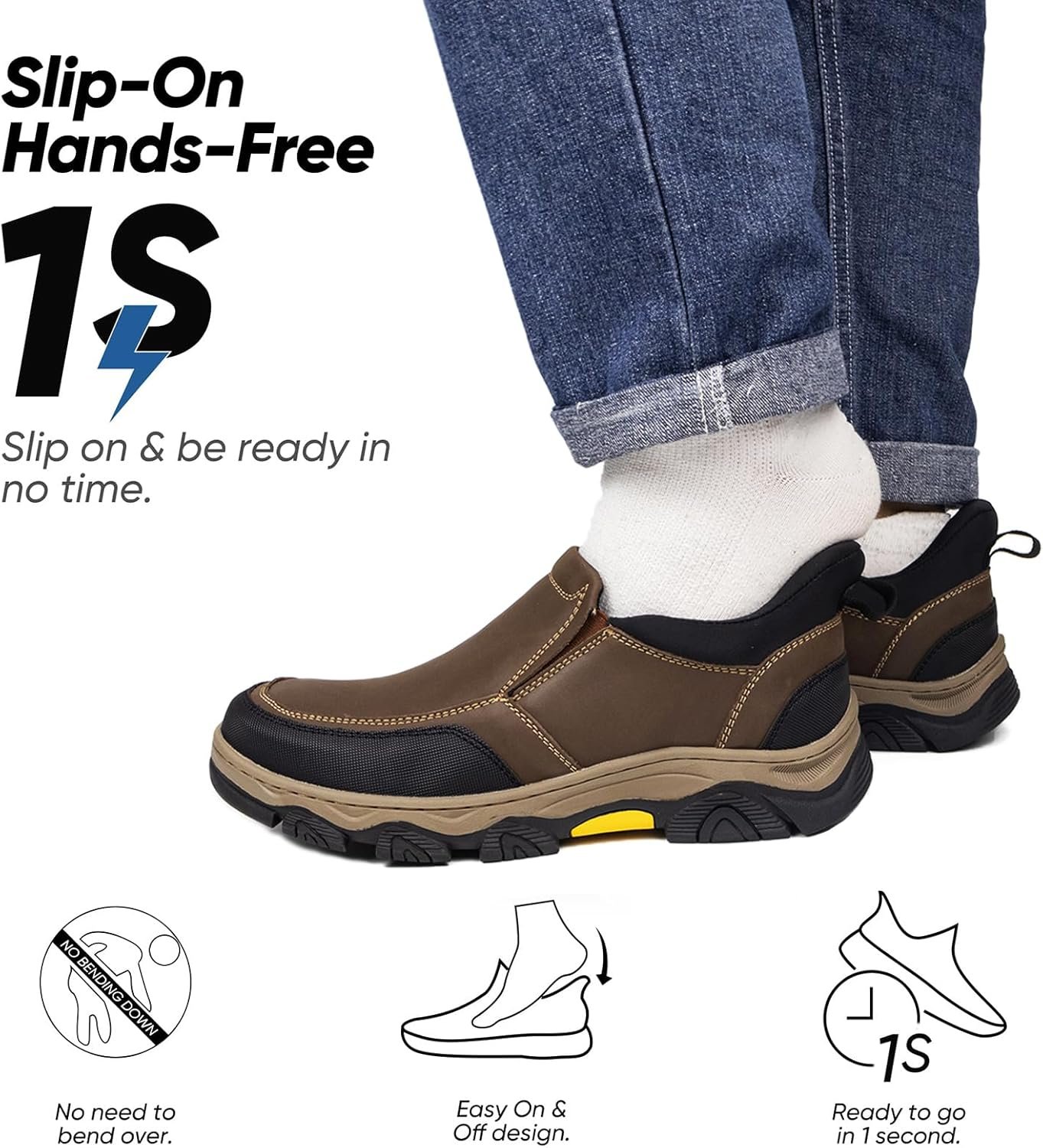 UPIShi Men’s Slip On Hands Free Waterproof Work Loafers Leather Walking Slip-Ins Casual Outdoor Office Business Cushioning Shoes