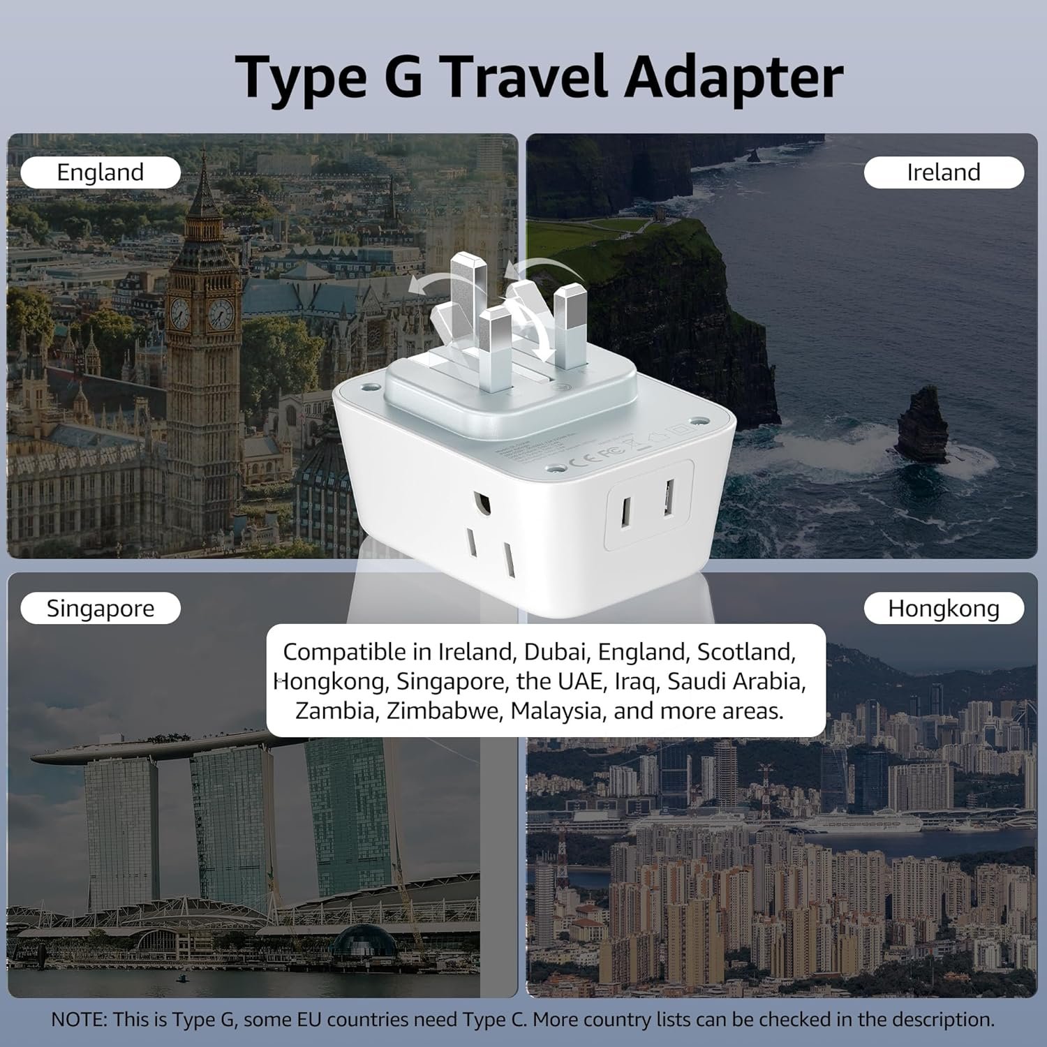 [Upgrade Foldable Compact Design] – This US to UK travel adaptor can be folded 90 degrees, which is not only portable to help you save space in your suitcase, but also better protects the plug from being bent. It will be a great travel accessory during UK trips or cruises.