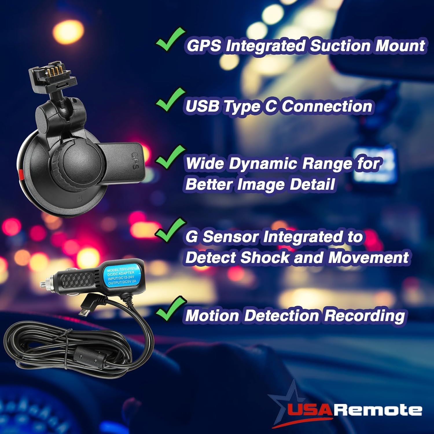 Be the first to review “USARemote 3Channel Dash Cam WDR 1440P+1080P Front and Rear Inside 3 Inch Screen, G Sensor Motion Detection and Loop Recording, Reverse Car Camera Dashcam, GPS Suction Mount, USB Type C for Cars”