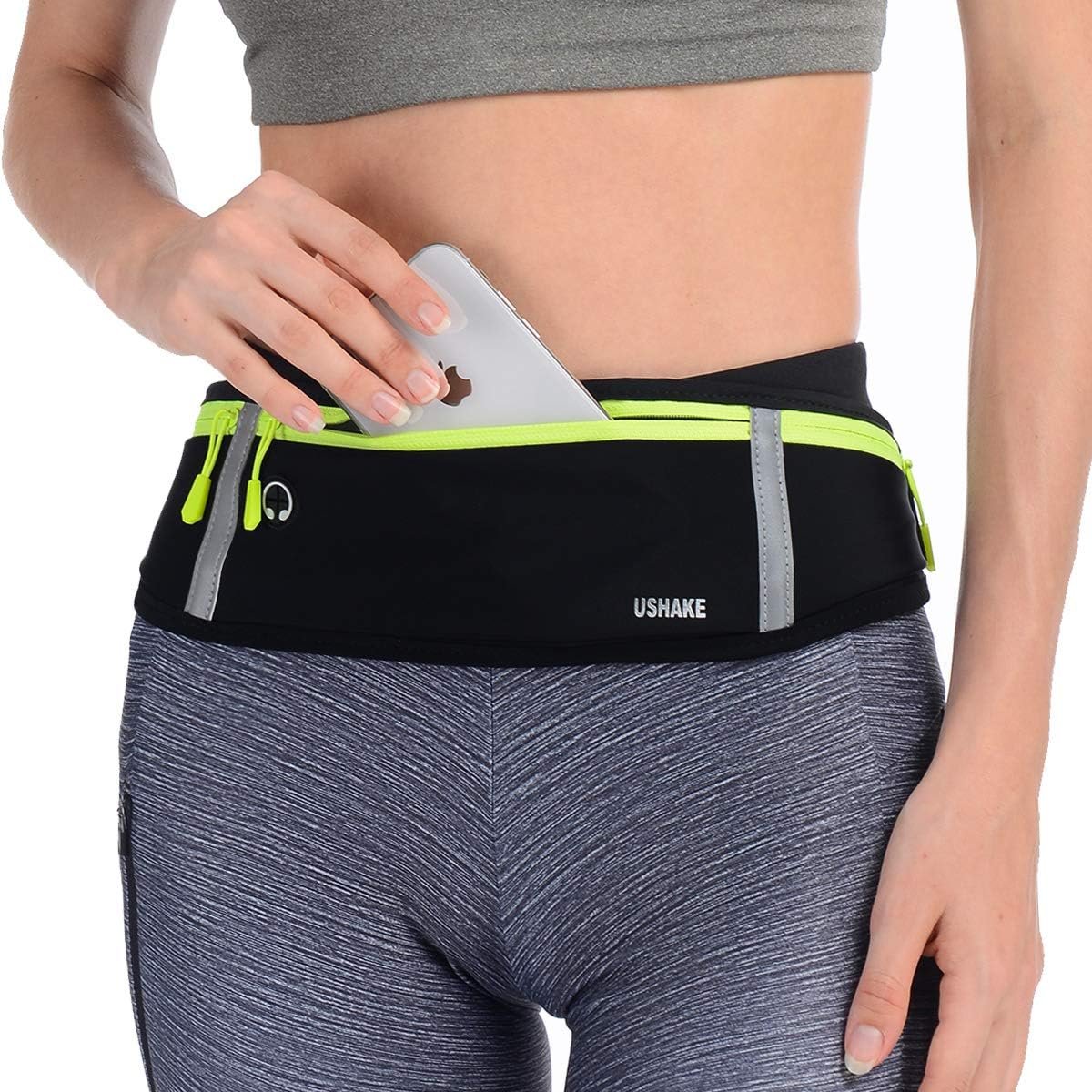USHAKE Slim Running Belt, Workout Fanny Pack for Men Women,Exercise Waist Pack for Apple iPhone Holder, Runner Belt for Running Walking Cycling Camping Gym