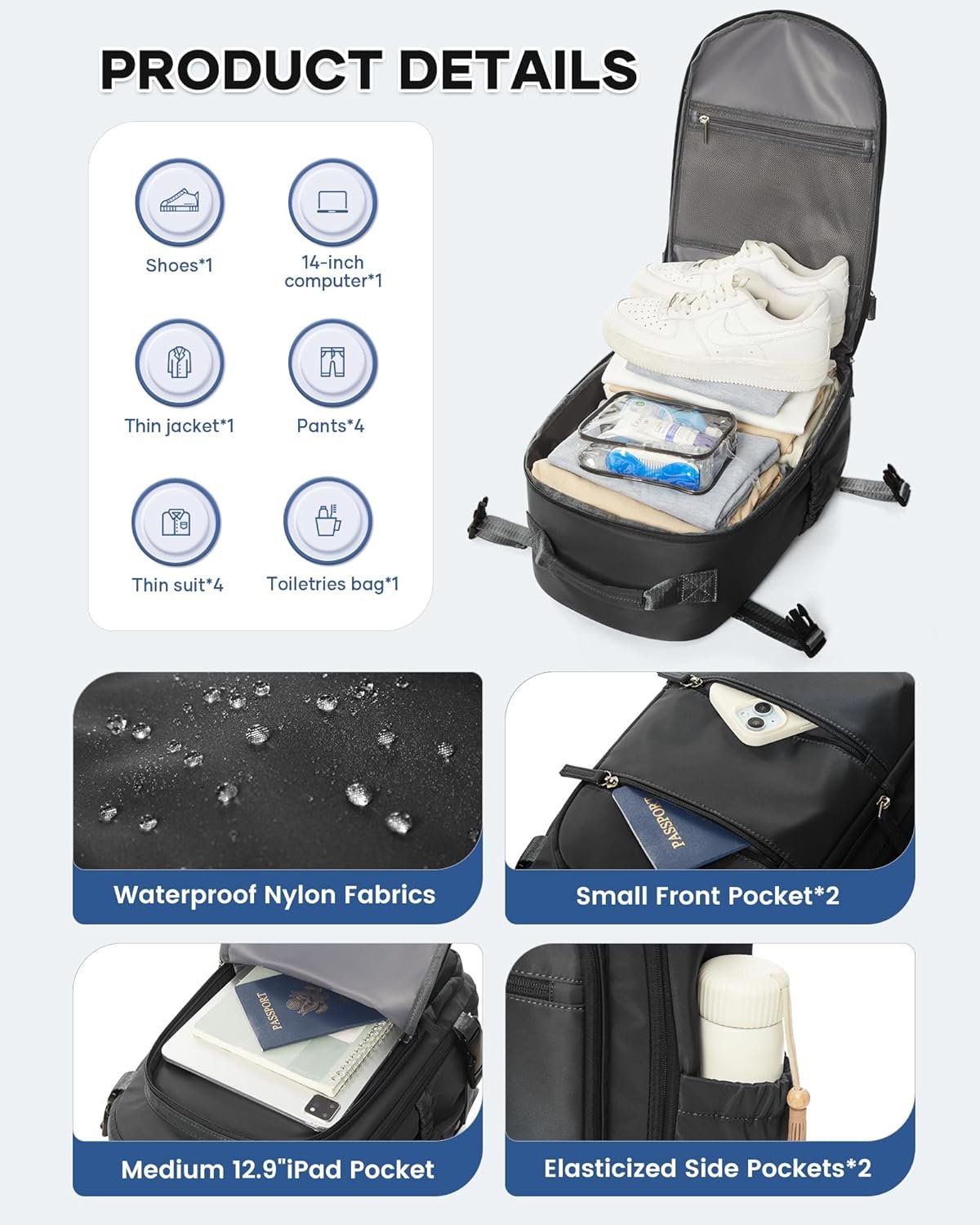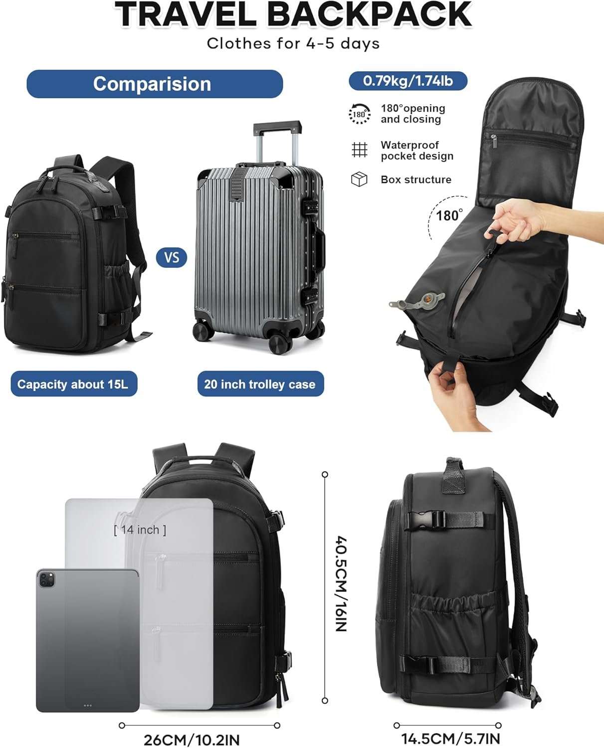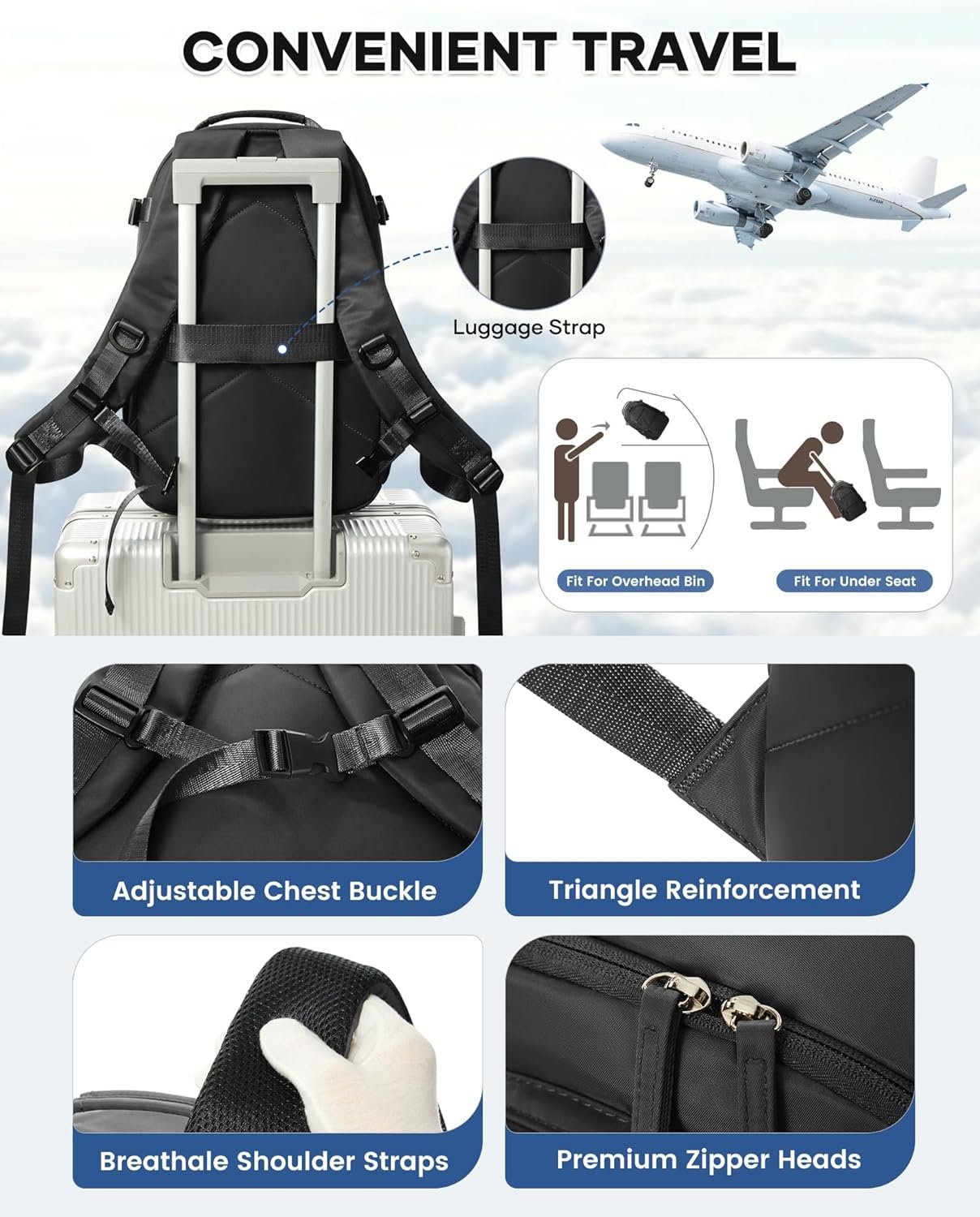 【Ultimate Comfort】Your comfort is our priority. The backpack with vacuum compression has an ergonomic airflow design at the back and is equipped with thick, soft, ventilated padding straps to alleviate stress on your shoulders and neck.