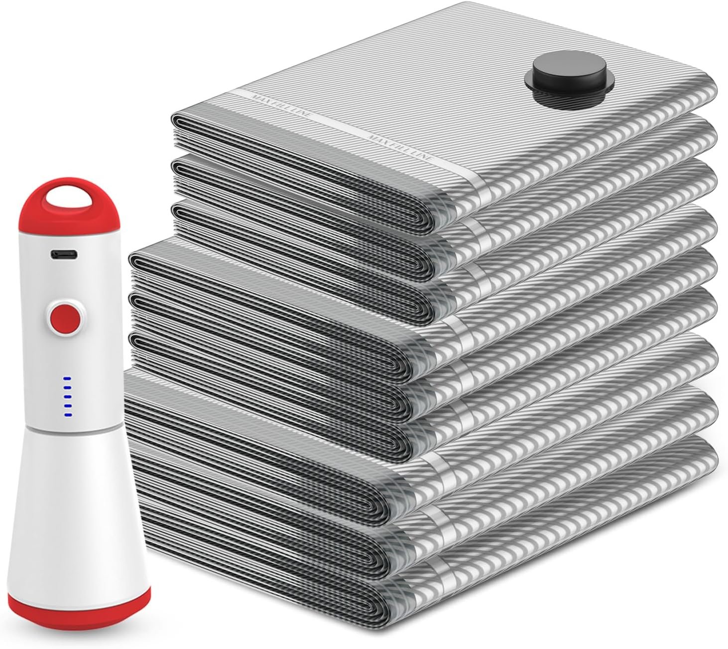 Travel-friendly Designed: Carry-on travel size vacuum bags designed for suitcase, optimizing storage space for maximum storing clothes during your trip. Equipped with portable electric pump to quickly organize your clothing