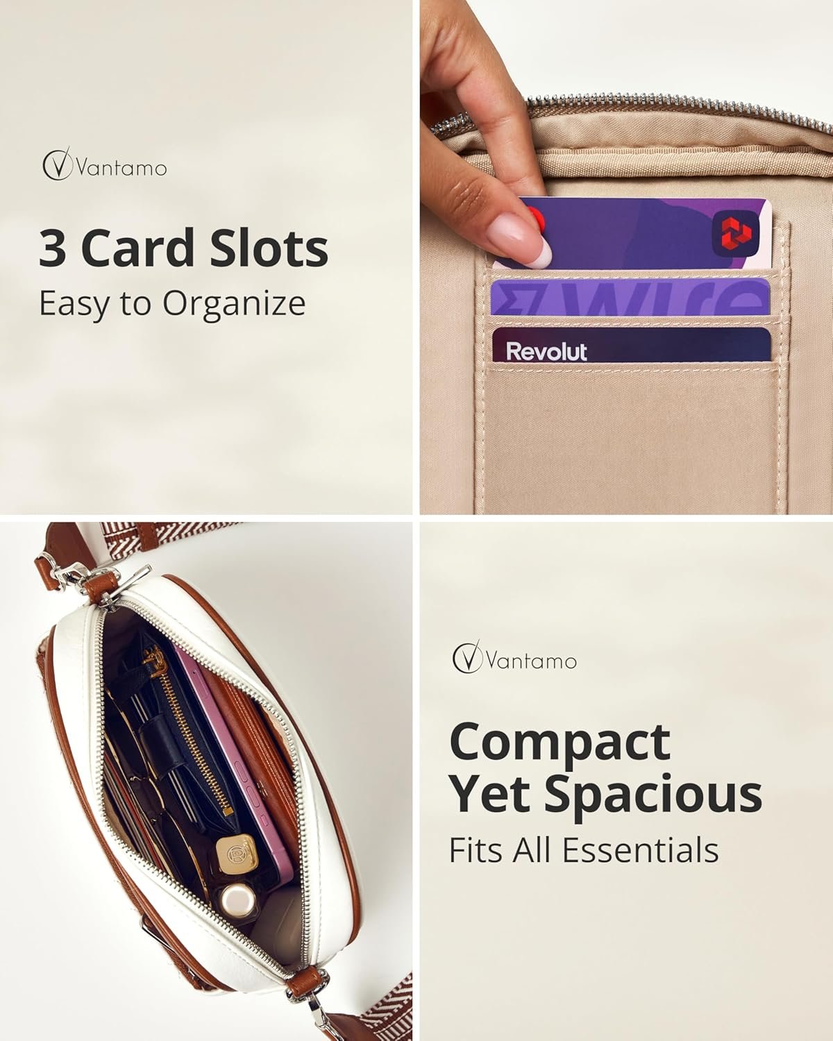 Vantamo minimalistic and versatile cross body bag for woman designed for everyday use with various outfits. Its modern look and practical size make it perfect for daily errands, work, or casual outings, combining fashion and function with ease for a reliable go-to purse.