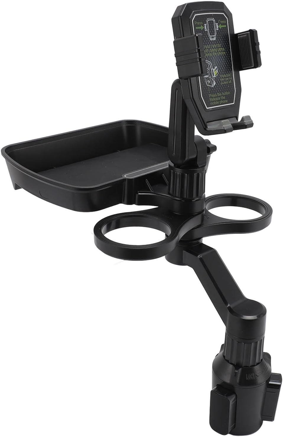 VBESTLIFE 4 in 1 Car Cup Holder Expander Tray, Car Cup Holder + Phone Mount + Food Tray Multifunctional Cup Holder Tray with 360° Rotation Base, for Truck RV Driver Road