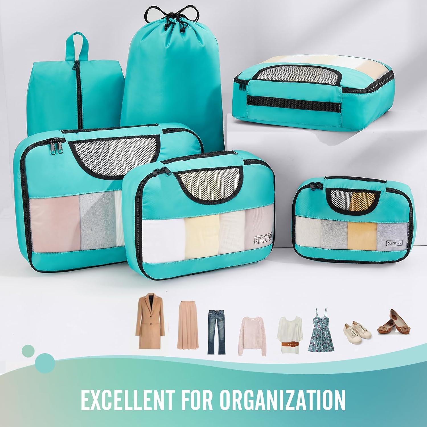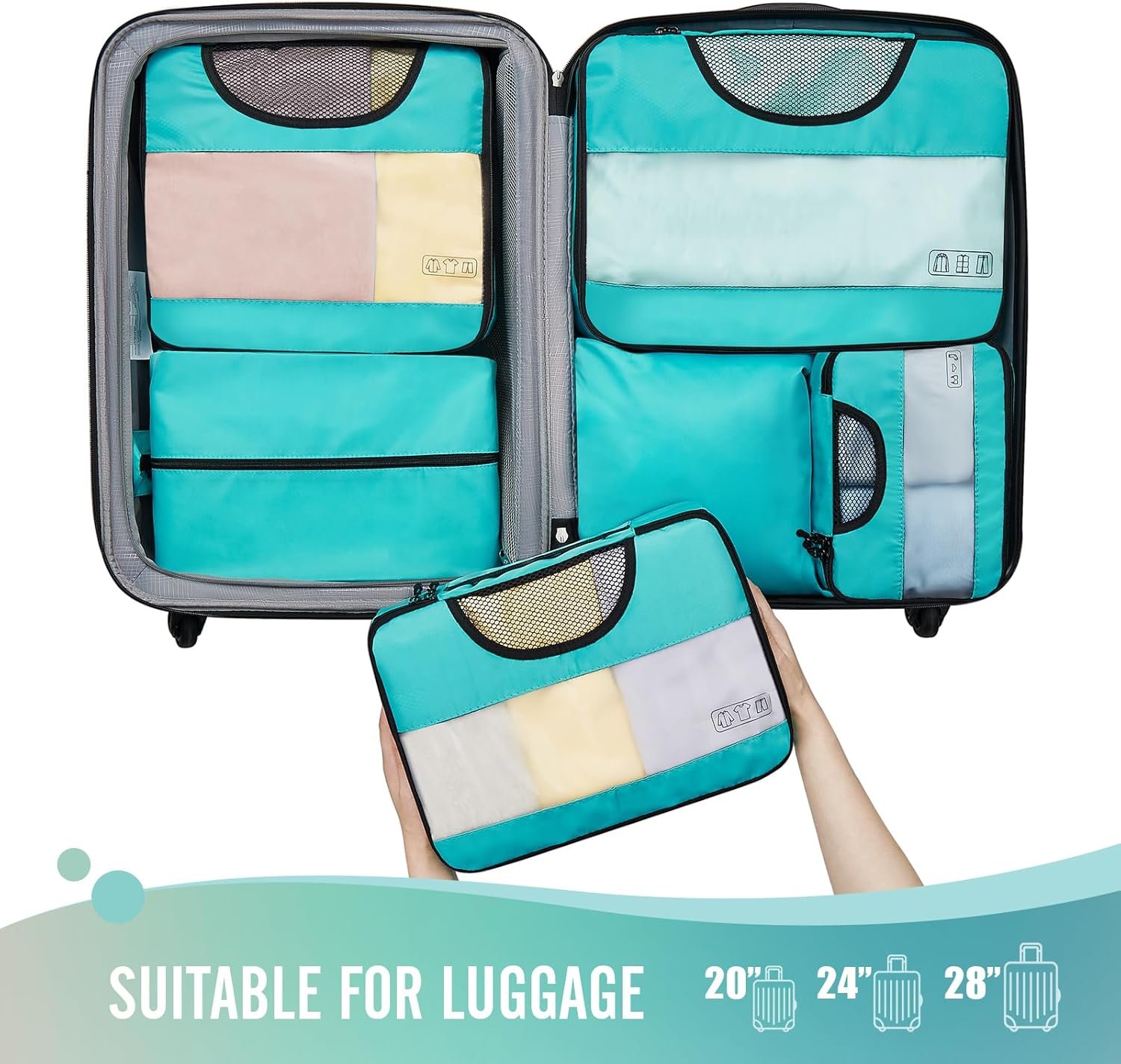 Veken 6 Set Packing Cubes for Suitcases, Travel Essentials for Carry on Luggage, Suitcase Organizer Bags Set for Travel Accessories in 4 Sizes(Extra Large, Large, Medium, Small),Cyan
