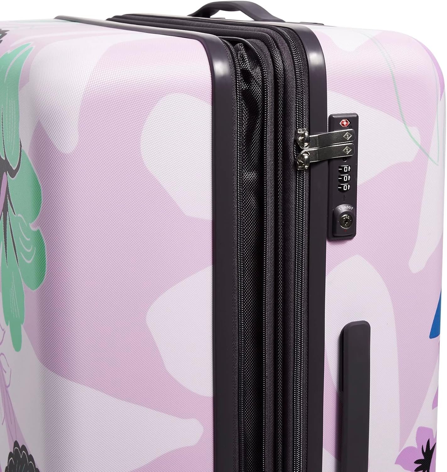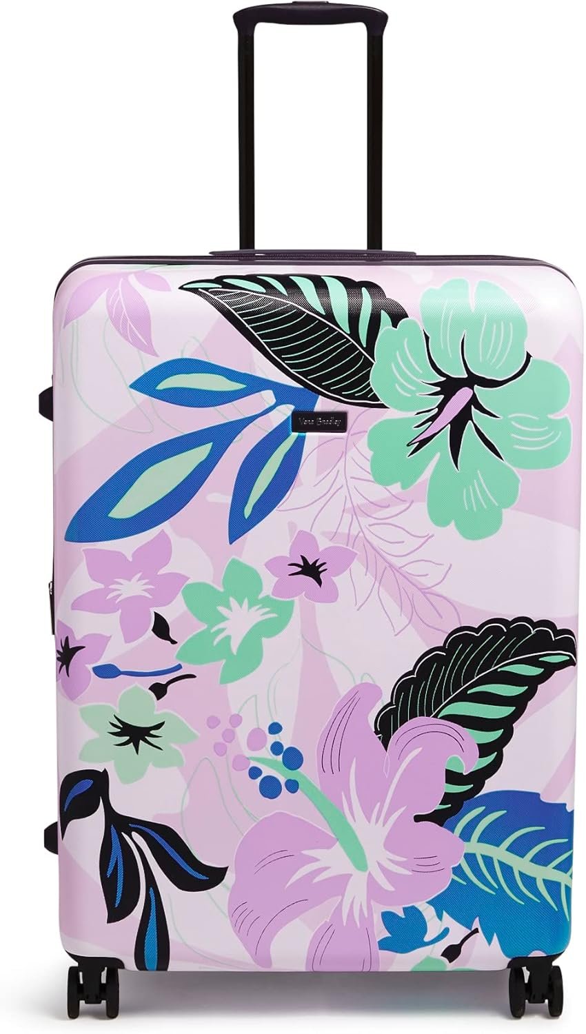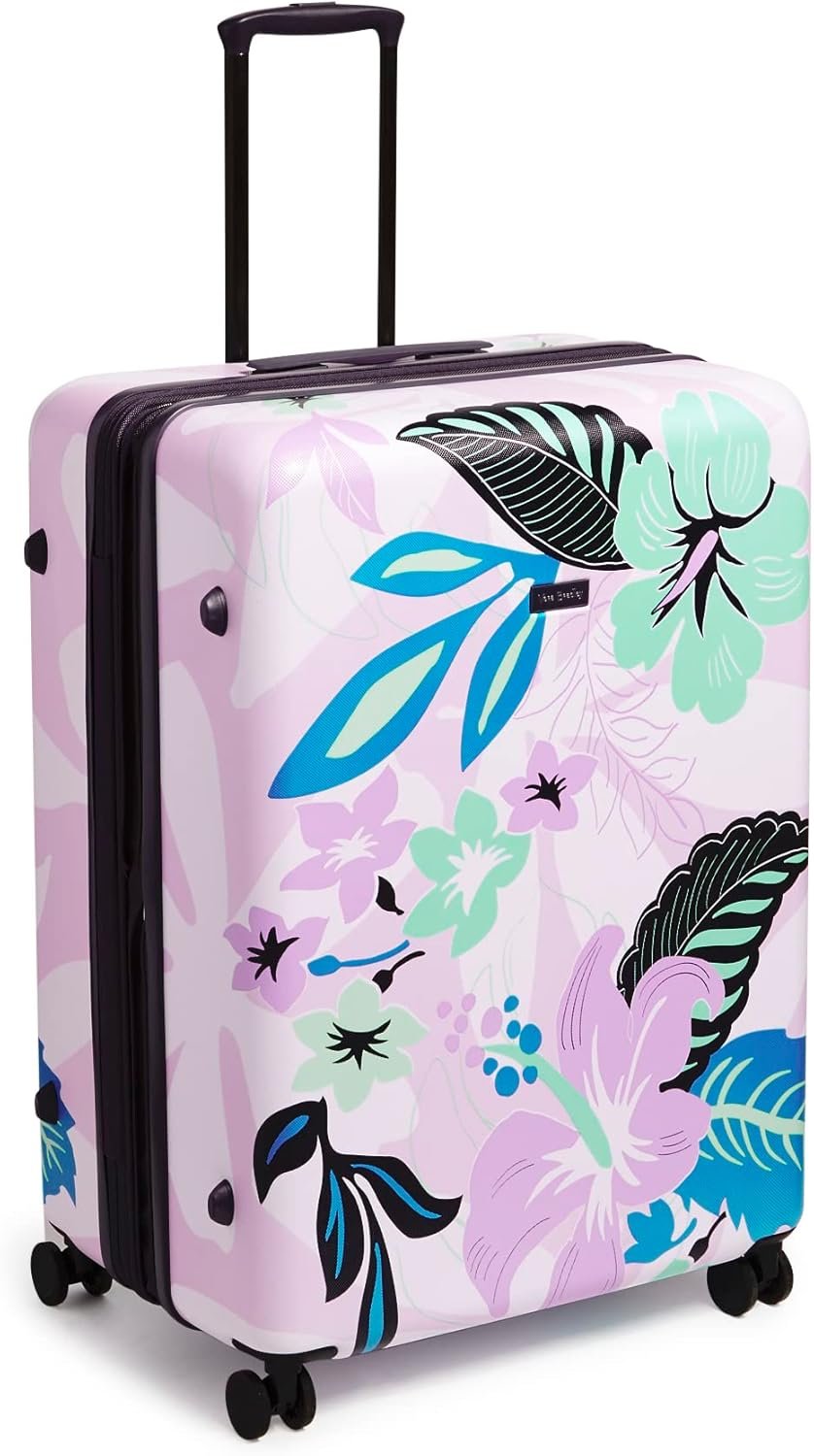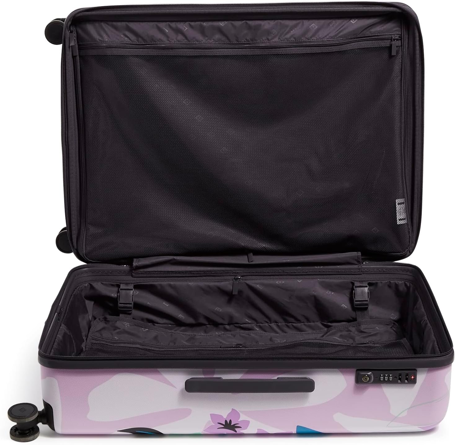 Vera Bradley is your go-to brand for rolling suitcases with spinner wheels and rolling travel luggage. You can purchase just one suitcase or matching suit cases to make your own unique suitcase set.. Main compartment features three mesh zip pockets and a zip compartment. Zip-out lining can be washed. Locking zippers that can be opened by security personnel. 1.5″ additional expansion zipper panel. Zip closures. Weighs 11.4 pounds. Capacity 95 L.. Lining: Remove lining; machine wash cold, gentle cycle, only non-chlorine bleach when needed; line dry Shell: Spot clean with mild detergent and a soft, damp cloth, rinse thoroughly; lay flat