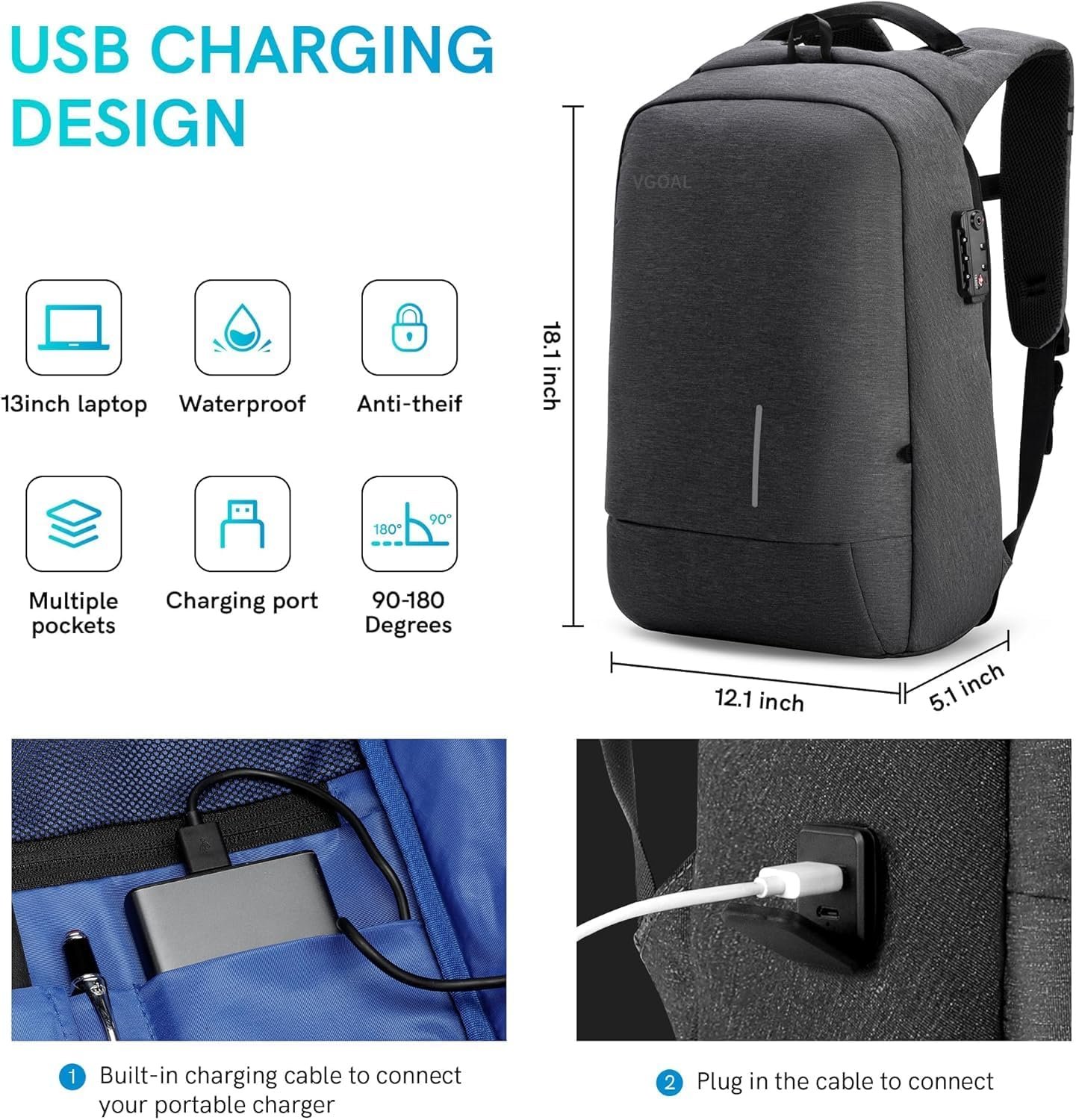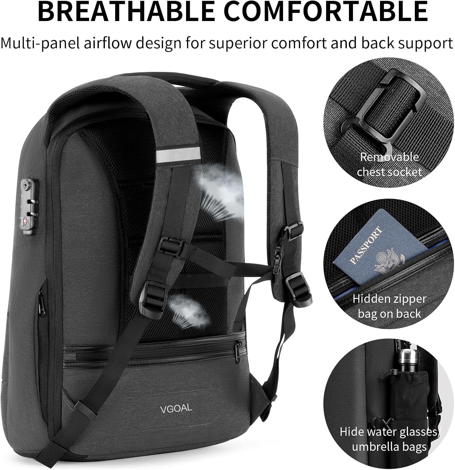 VGOAL Laptop Backpack 15.6 inch with TSA Lock and USB Charging Flight Approved Carry on Business Backpack Anti Theft Traveling Bag for Men and Women