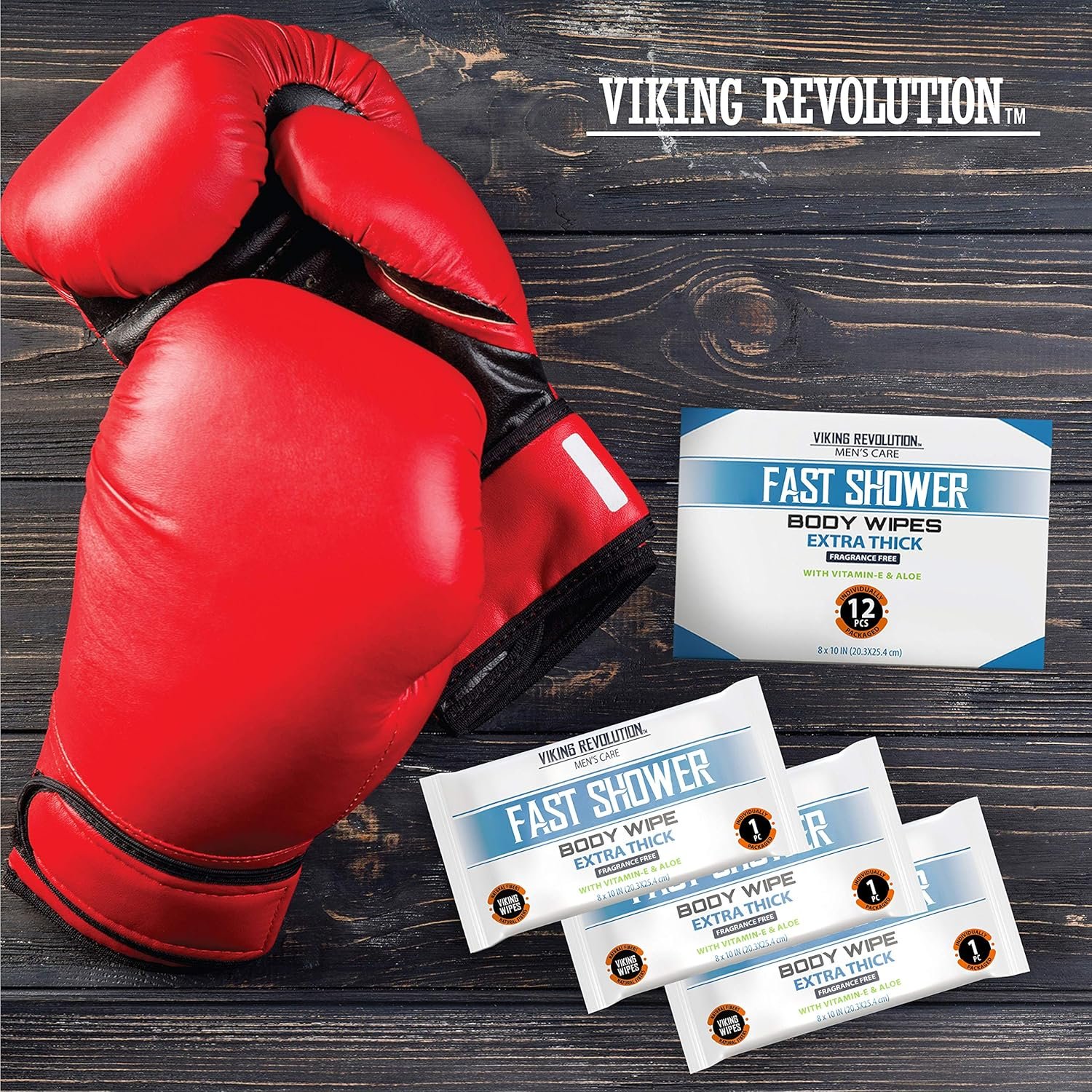 Viking Revolution Body Wipes for Men – Gym Wipes, Shower Wipes – Disposable and Eco-Friendly – Unscented Wet Wipes with Vitamin E and Aloe – 12 Individually Wrapped Wipes