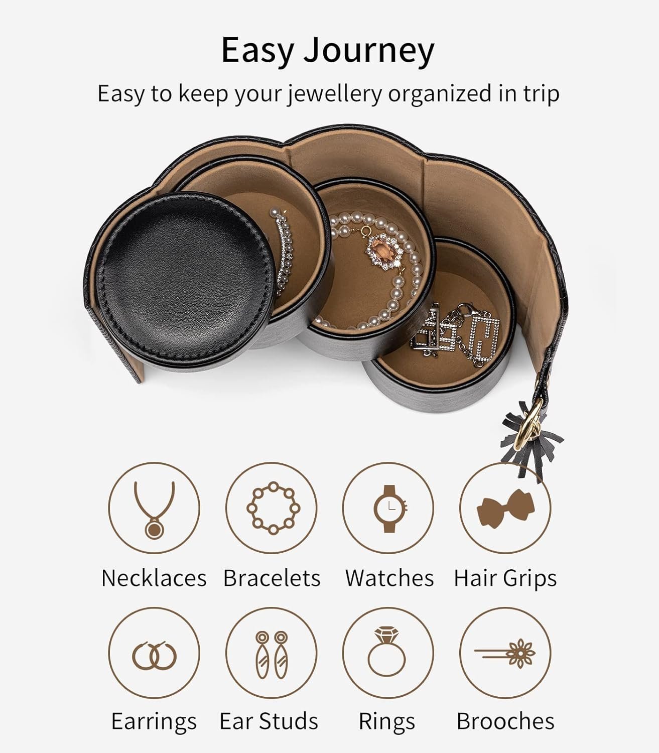 Multi-functional – Jewelry travel organizer can be used to store necklace, watch, earrings, brooch, hairpin, and other accessories. It can also be placed headphones, usb flash disk, notes, keys and other small objects